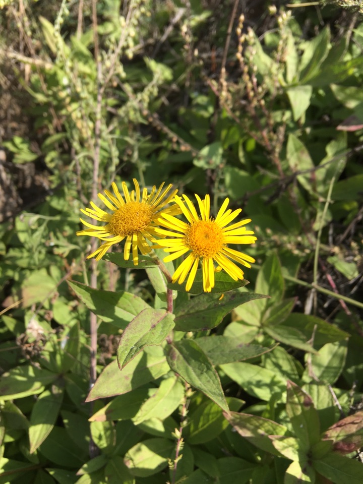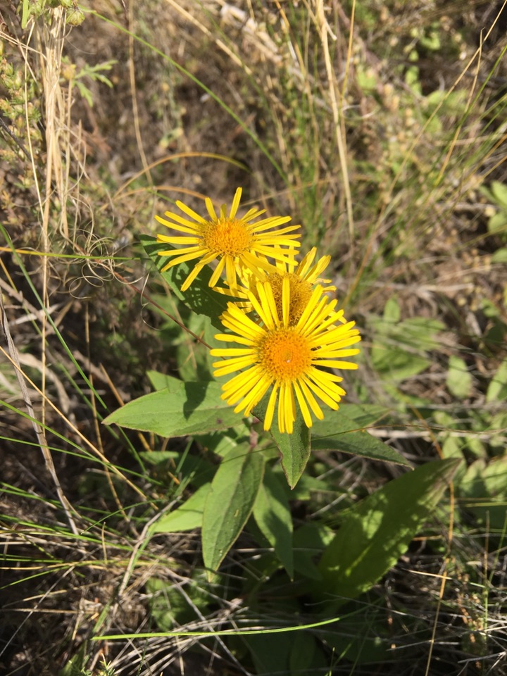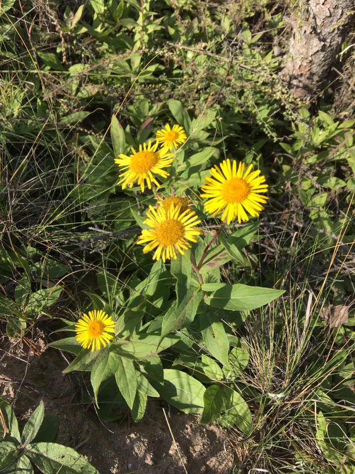 旋覆花是菊科旋覆花属多年生草本植物,也叫金钱花、金佛花、旋复花、六月菊等。虽称六月菊,但是锡林浩特草原上的它却在八月底九月初才开始开花🌼远看和苦菜花一样,近观才发现区别,除了颜色差不多,叶和花的形状都不一样,而且气味也有很大差异,一个是很浓的苦味,一个是清香味。