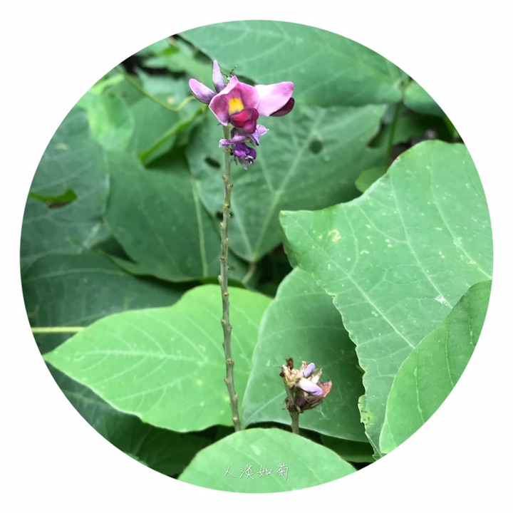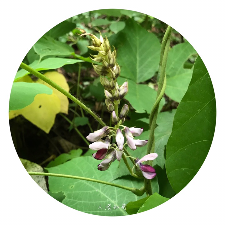 葛〔拉丁学名:Pueraria lobata(Willd.)Ohwi〕,别称葛藤、甘葛、野葛等。豆科葛属多年生草质藤本植物。块根肥厚圆柱状,叶互生,项生叶片菱状卵圆形,总状花序,腋生,蝶形花冠,紫红色。荚果长条形,扁平,密被黄褐色硬毛。7-8月开花,8-10月结果。