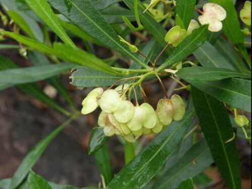 车桑子(学名:Dodonaea viscosa (L.) Jacq.)是无患子科车桑子属植物,灌木或小乔木,高1-3米或更高,小枝扁,有狭翅或棱角,单叶,纸质,形状和大小变异很大,线形、线状匙形、线状披针形、倒披针形或长圆形,花序顶生或在小枝上部腋生,比叶短,密花,主轴和分枝均有棱角,蒴果倒心形或扁球形,连翅宽1.8-2.5厘米,种皮膜质或纸质,有脉纹,种子每室1或2颗,透镜状,黑色,花期秋末,果期冬末春初。