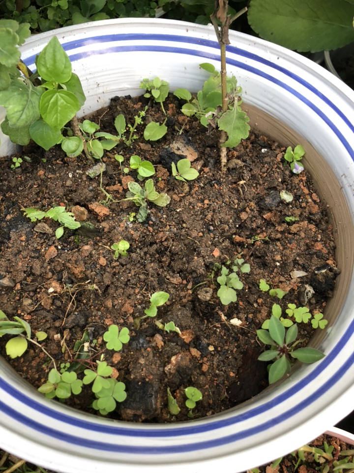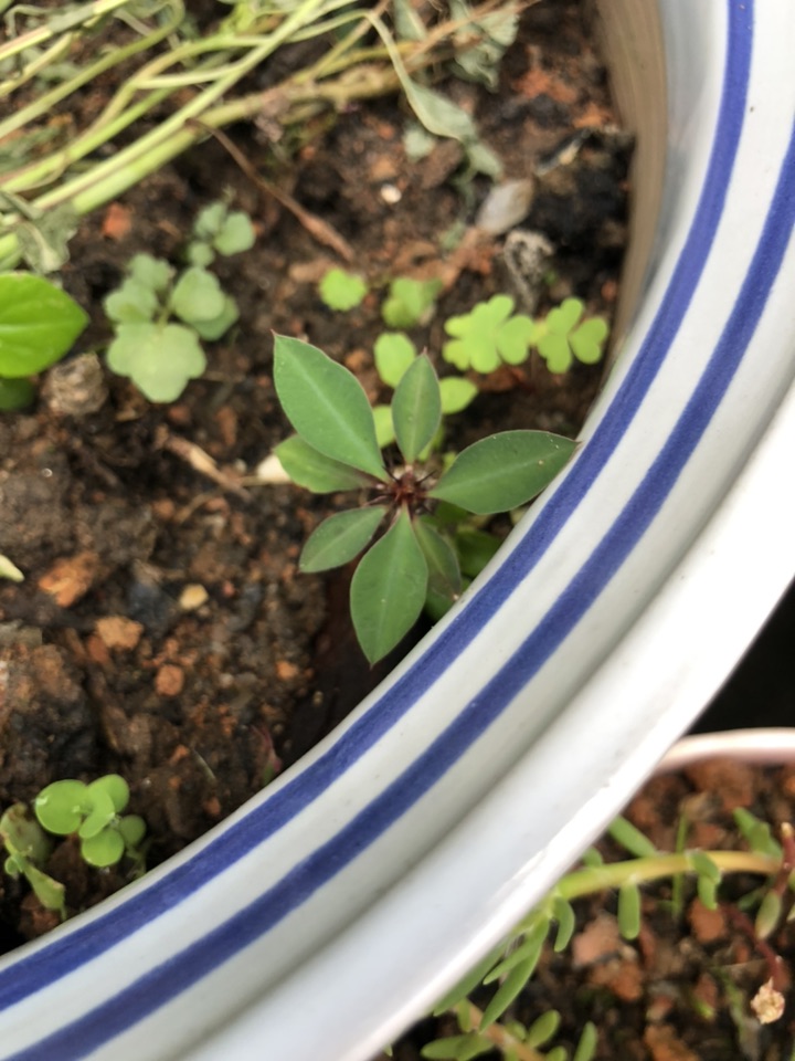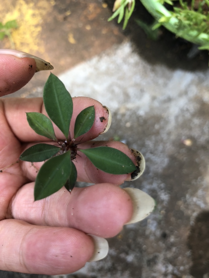 菊花盆里平白无辜的飞来一位小客人! 这么小就有刺了,非常不喜欢,拔掉!从哪儿来的呢?