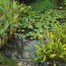 活泼可爱的小鸭子给平淡无奇的湖面增添了许多生机。