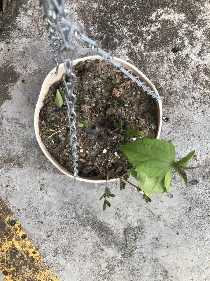 看看这个花盆里养的花都去哪儿了,不知道!就飞来一根飞机草!