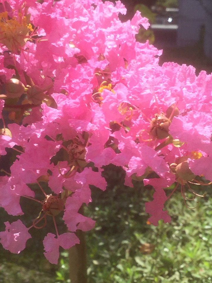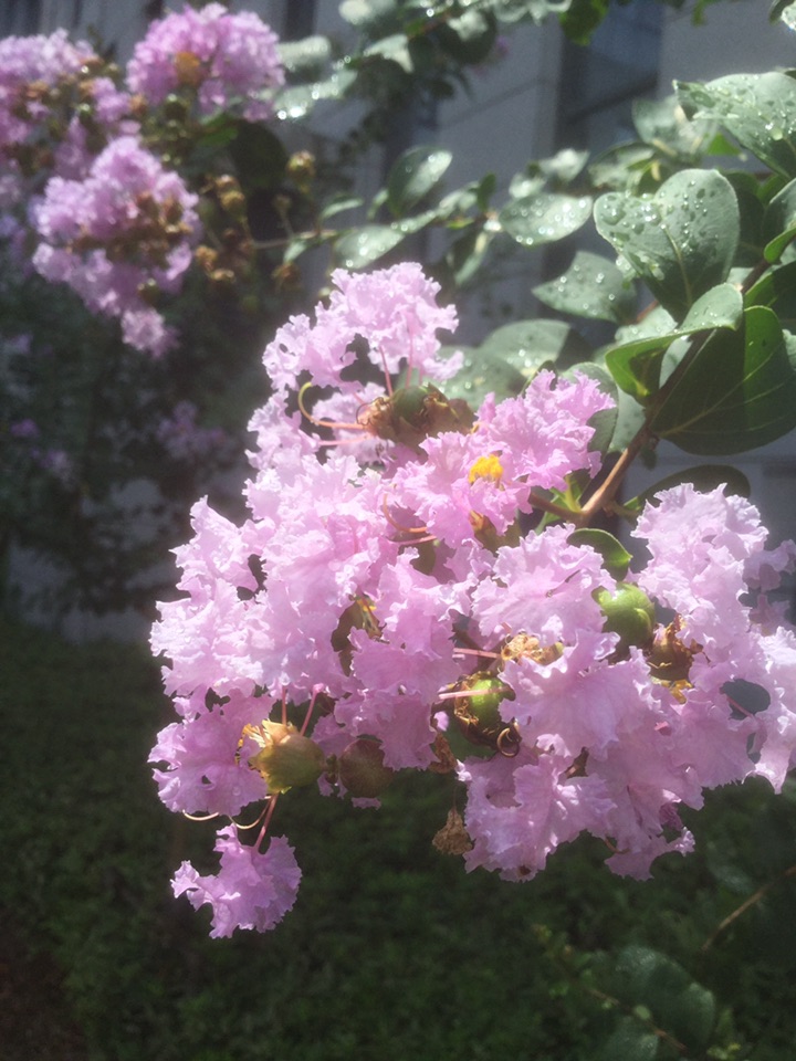 过来一个冬天,紫薇开始发芽,抽枝。。。到了春天长满了花苞,夏天便开花了,我和老公都欣喜若狂,照顾的更为尽心了。经过两年,现在的紫薇已经是花叶繁茂,爆美!