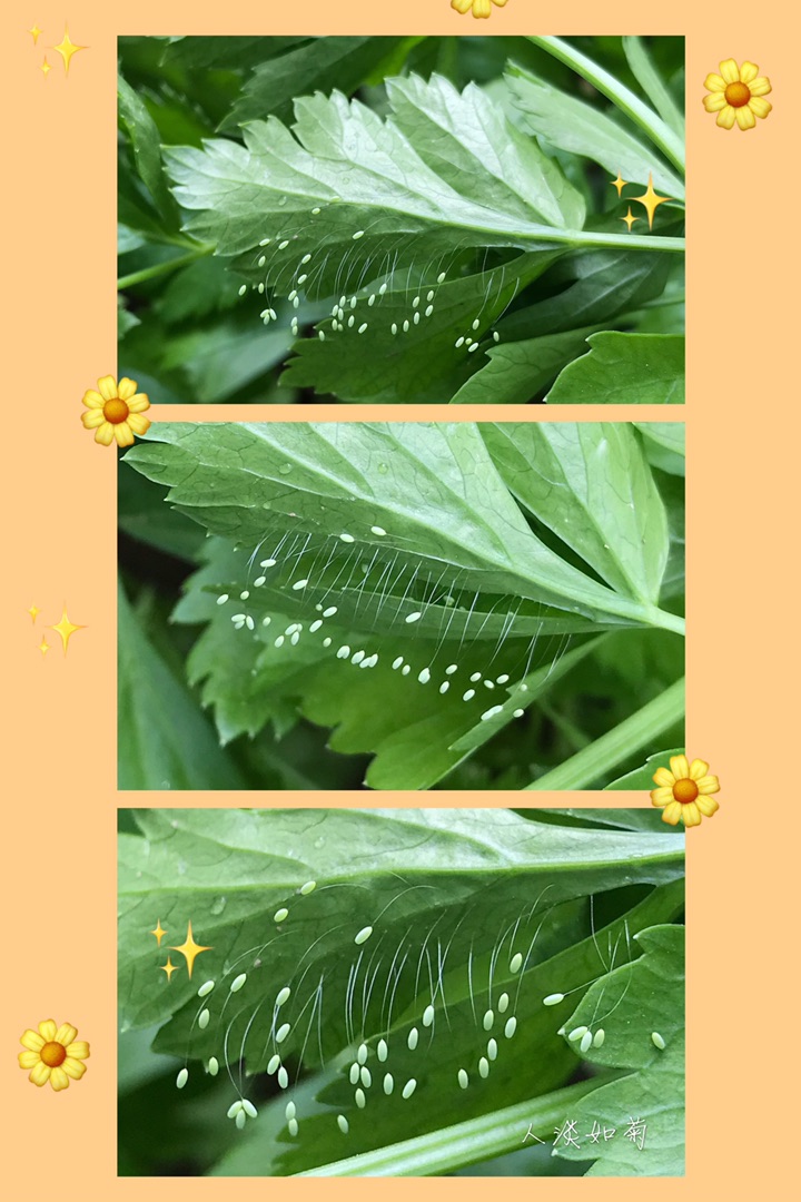 草蛉的卵非常有特色,象一簇簇的花蕊,附在叶背、枝条或玻璃等特品上,很具辨识性。