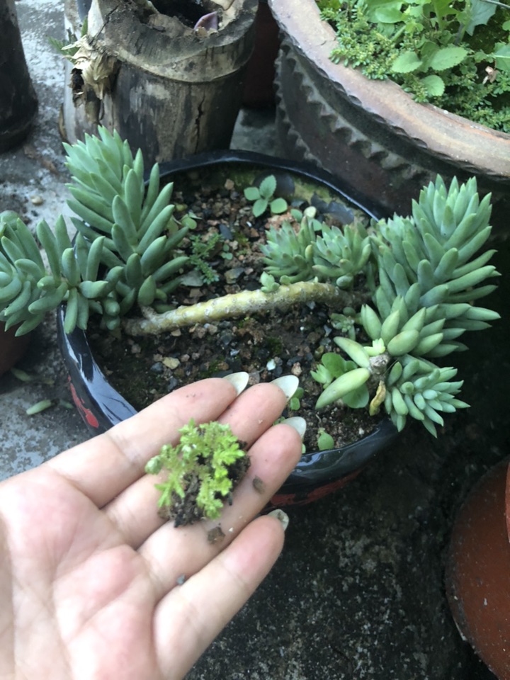 除一下千佛手的杂草呢,觉得这小东西是个蕨类,我又舍不得扔了,再种回去看看它长大的样子!