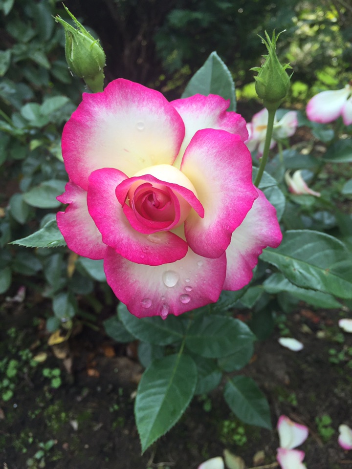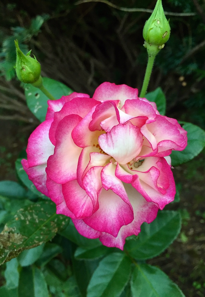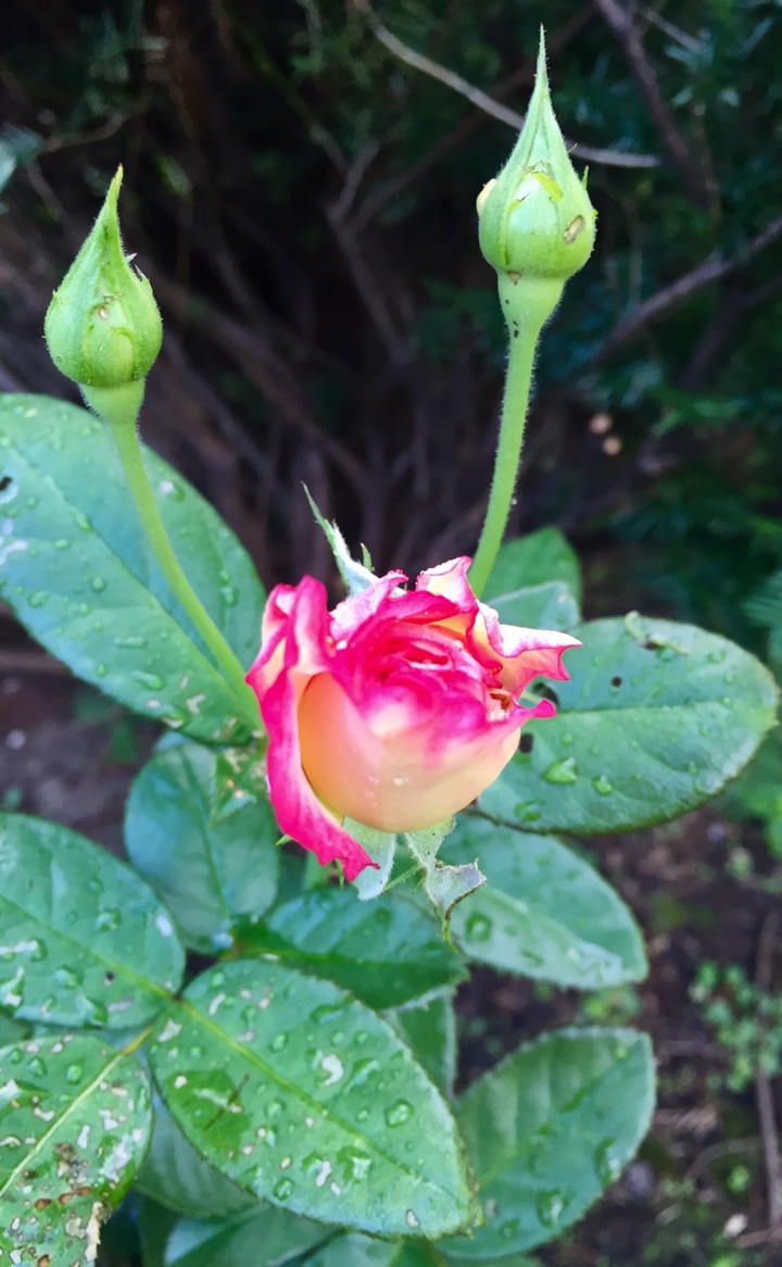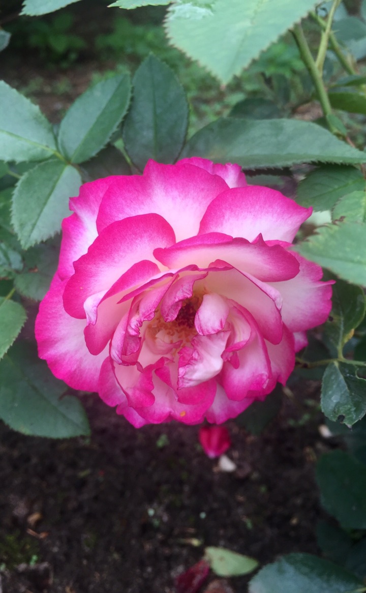 因为不想喷洒杀虫剂 前两年种的十几、二十株月季今年都长得不好、陆陆续续只开了有限、可数的几朵花 可是又非常、非常之喜欢月季、抵达抗不住那些月季美花花儿的诱惑 于是八月中忍不住又买了、种了三株新的、不同品种的月季 都说是有抗病、抗虫的新品种 希望真是如此! 这株种了近一个月后 这两天大量开花 还真是被她的美艳所惊叹!