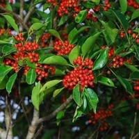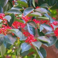 铁冬青(Ilex rotunda Thunb.),别名救必应、熊胆木、白银香、白银木、过山风、红熊胆、羊不食、七星香、万紫千红等,为冬青科亚热带常绿灌木或乔木,高可达20米,胸径达1米;树皮灰色至灰黑色;叶薄革质,椭圆形、全缘,叶面有光泽;花小,黄白色,芳香;雌雄异株,通常4-7朵排成聚伞花序,腋生或生于当年小枝上,果球形,6-8mm大小,熟时红色;花期3-4月,果熟期10-12月。