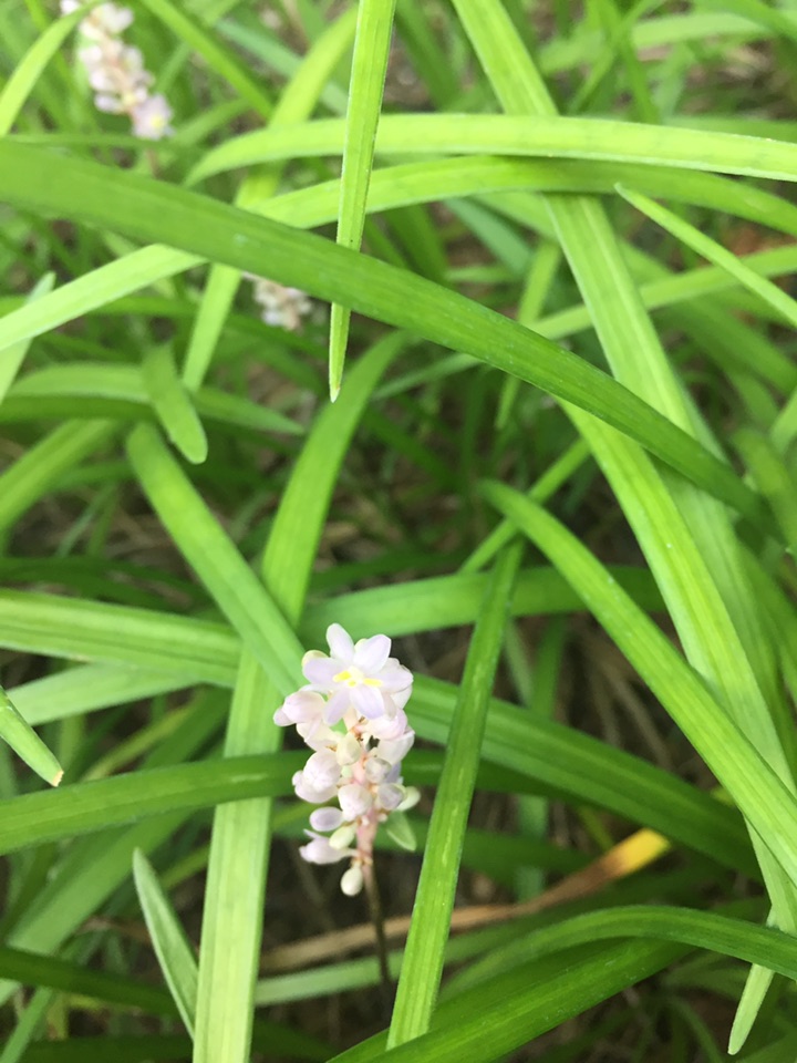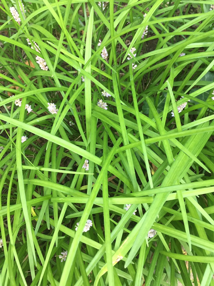 这两天沿街草开花了 花朵虽小、要爬下仔细看才能看到花 可是一眼望过去 绿油油中一枝枝白花束也是挺吸引人的