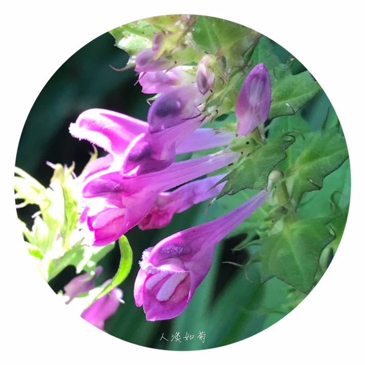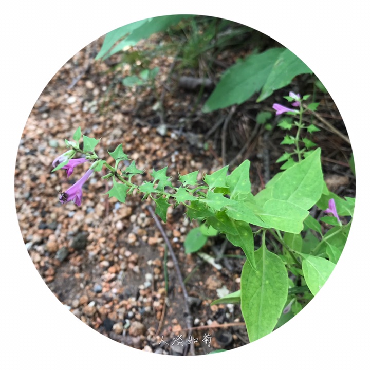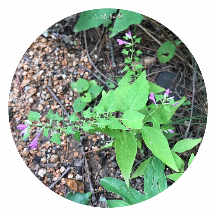 直立草本,植株全体疏被鳞片状短毛,有时茎上还有两列多细胞柔毛。茎通常多分枝,少不分枝,近于四棱形,高15-80厘米。叶柄长约5毫米,叶片披针形至卵状披针形,顶端渐尖,基部圆钝或楔形,长2-8厘米,宽0.8-3厘米。苞叶绿色,仅基部具尖齿至整个边缘具多条刺毛状长齿,较少几乎全缘的,顶端急尖至长渐尖。花萼长约4毫米,常被糙毛,脉上常生多细胞柔毛,萼齿长三角形至钻状三角形,生有短睫毛;花冠紫色、紫红色或红色,长15-20毫米,筒部长为檐部长的2倍左右,上唇内面密被须毛。蒴果卵状渐尖,长8-10毫米,直或顶端稍向前偏,被鳞片状毛,少无毛的。种子黑色,长3毫米。花期夏秋。