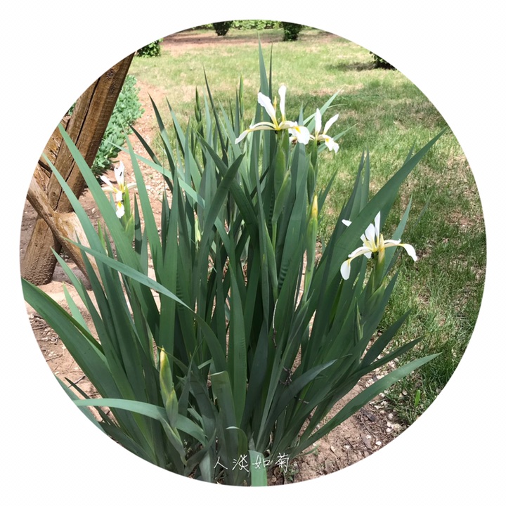多年生草本植物。根状茎紫褐色,粗壮而肥厚,直径1.5-3厘米,斜伸,有环形纹,表面残 存有老叶叶鞘;须根粗壮,黄棕色,有皱缩的横纹。叶剑形,灰绿色,长20-60厘米,宽1-2厘米,略弯曲,有10多条纵脉,无明显的中脉。花茎粗壮,高20-40厘米,直径约0.5厘米,比叶短,上部有l-4个侧枝,中下部有1-2枚茎生叶;在花茎分枝处生有3枚苞片,草质,绿色,长5.5-9厘米,宽约2厘米,边缘膜质,白色,内包含有2朵花;花黄色,直径5-6厘米;花梗长1.5-3厘米;花被管长约1厘米,外花被裂片提琴形,长约4厘米,宽约1厘米,内花被裂片倒披针形,长约3.5厘米,宽6-8毫米;雄蕊长约3厘米,花药黄色;花柱分枝扁平,片状,长约3.5厘米,宽约6毫米,呈拱形弯曲,子房狭纺锤形,长3.5-4厘米,上部细长。