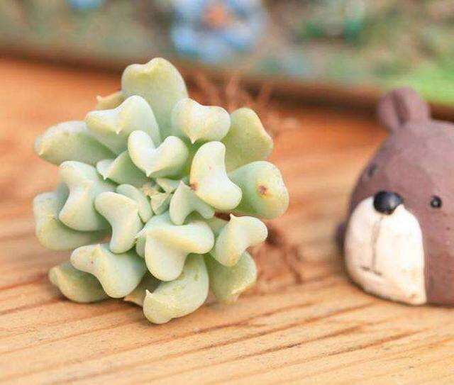 特玉莲(Echeveria runyonii ‘Topsy Turvy’),长生草亚科,景天科石莲花属,多年生多肉植物,鲁氏石莲花的变种,叶形十分奇特,甚至花的形状也会有一定程度的扭曲。其原种(鲁氏石莲花)产于墨西哥的塔毛利帕斯州,而首个变异种产于美国的加利福尼亚州。