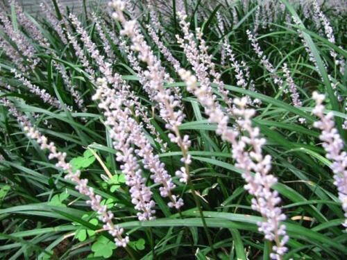 剑叶沿阶草Ophiopogonjaburan百合科沿阶草属多年生草本,又名阔叶沿阶草,俗称书带草。叶基生,成丛;总状花序,下垂;花白色,花梗下弯,具关节,花被片6枚。