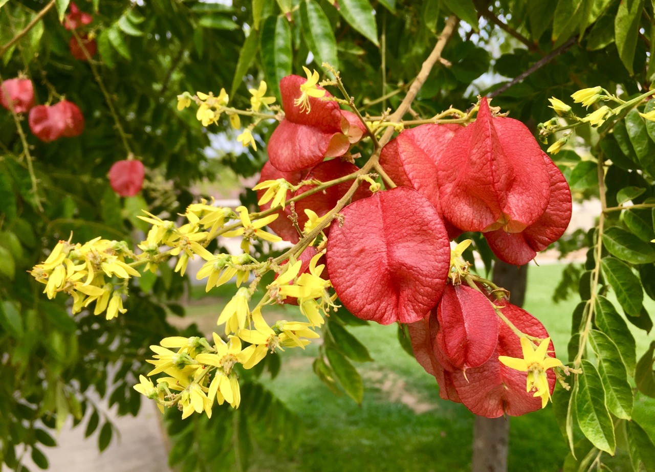 :复羽叶的,看不清是否全缘。 开花的时候,数花瓣数,才知道是否台湾栾。