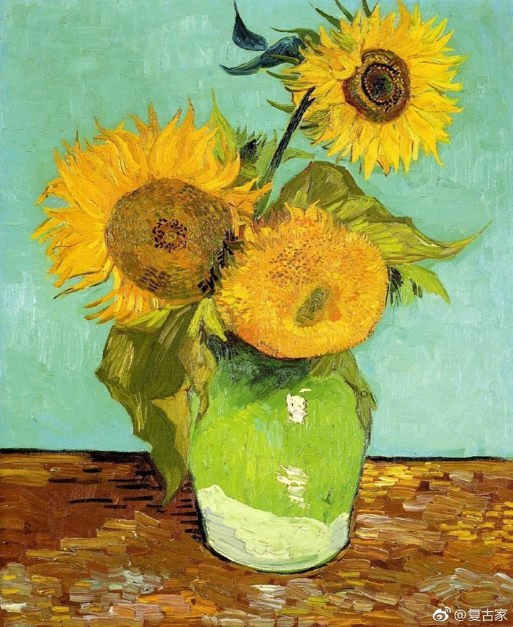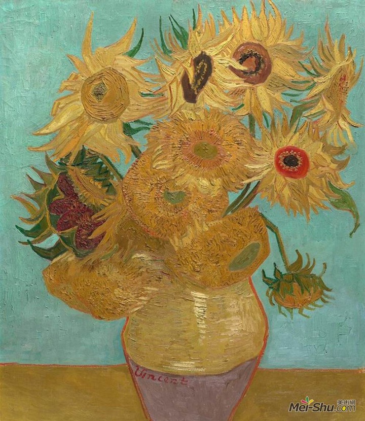 他在阿罗期间,一心想要邀请好友高更过来与他一起小住,一同探讨艺术。这是他为了把画室装点的漂亮一些,好迎接高更而画下的向日葵。