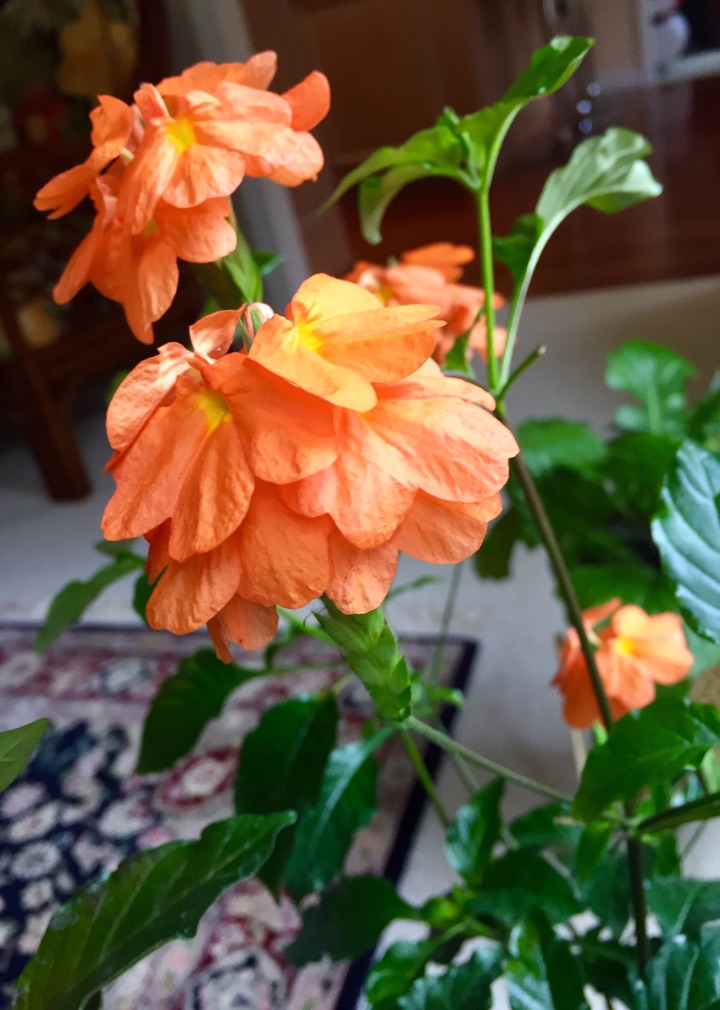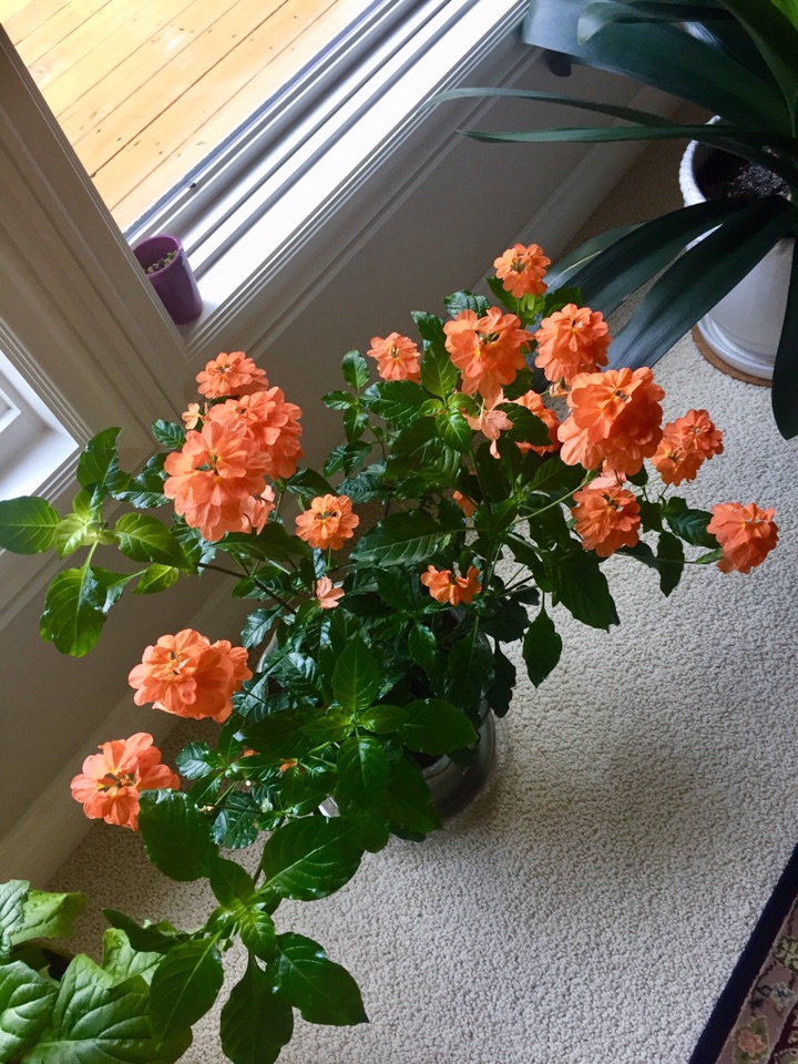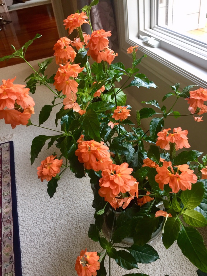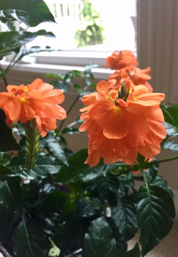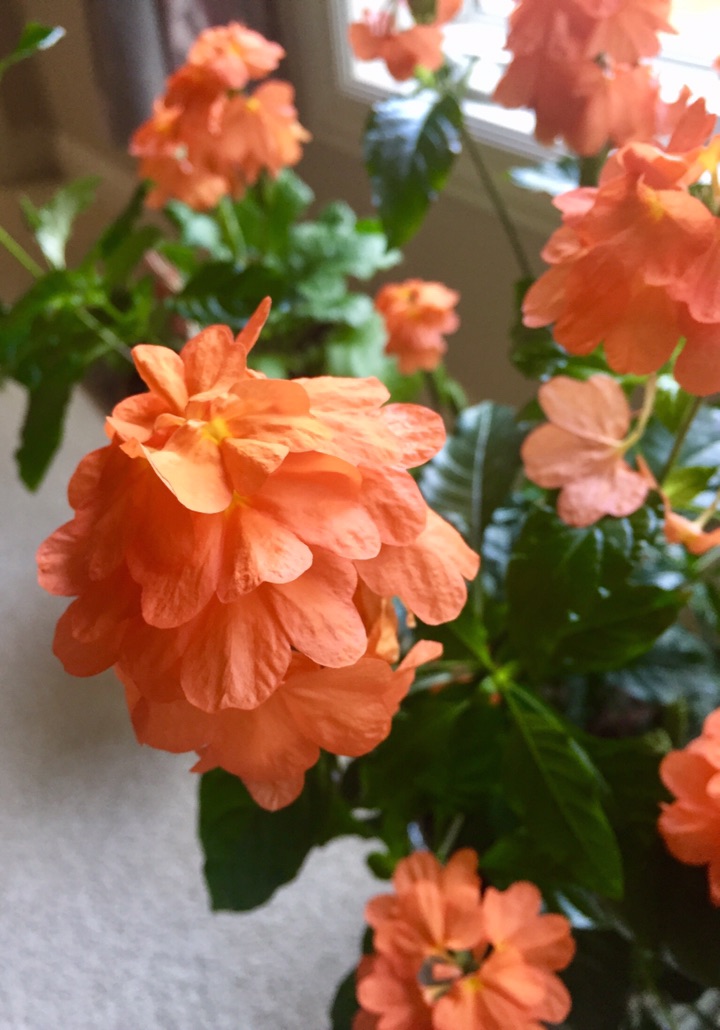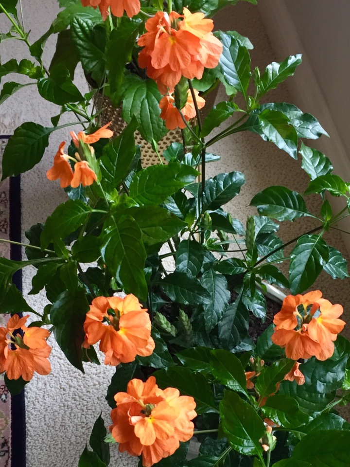 夏天最热的时候买的 当时小小的一盆 放在deck上 主要是想添加点亮丽的色彩 后来查了一下不耐寒 所以天稍转凉便搬回室内了 没想到搬回来后花越开越多、叶子也变得越来越深绿、油亮 关键是持续开花不断 现在已经开了一个多、快两个月了!所查资料说明是一年四季都有花开 真好,这样冬天就有花儿赏啦!所以,给花友们推荐一下,尤其是那些有着寒冷而漫长冬季的花友们😜🤝