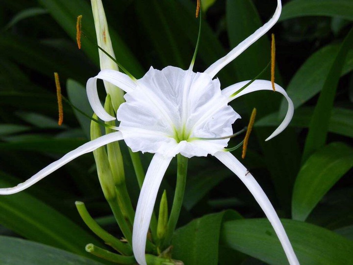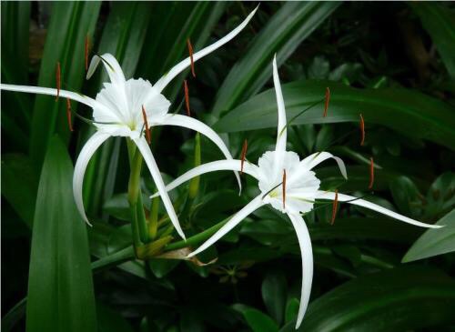 蜘蛛兰为多个植物物种别称:花蜘蛛兰、窄唇蜘蛛兰、水鬼蕉、带叶兰、螫蟹百合等。