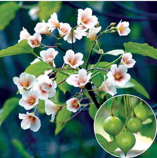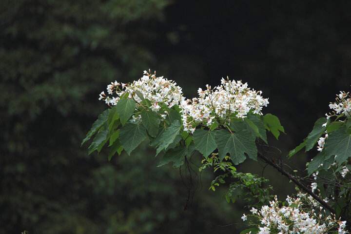 油桐(学名:Vernicia fordii (Hemsl.) Airy Shaw)是大戟科,油桐属落叶乔木,高可达10米;树皮灰色,近光滑;枝条粗壮,无毛,叶片卵圆形,顶端短尖,基部截平至浅心形,下面灰绿色,叶柄与叶片近等长,无毛,花雌雄同株,先叶或与叶同时开放;花瓣白色,有淡红色脉纹,子房密被柔毛,核果近球状,果皮光滑;种子种皮木质。3-4月开花,8-9月结果。