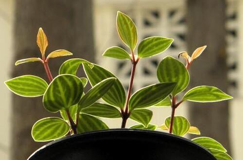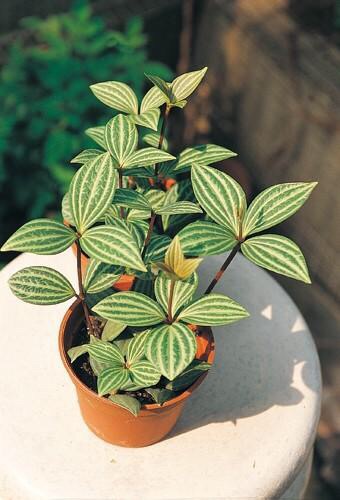 白脉椒草,也叫钻石翡翠,为胡椒科椒草属(也称豆瓣绿属)多年生草本植物,植株易丛生,高20cm~30cm,茎直立生长,红褐色。叶3~4片鸵生,具红褐色短柄,质厚,稍呈肉质,椭圆形,全缘,叶端突起,呈尖形,叶长5cm~8cm左右,宽3cm~5cm,叶色深绿,新叶略呈红褐色,在光照充足条件下尤为明显,叶面有5条凹陷的月牙形白色脉纹。穗状花序细长。