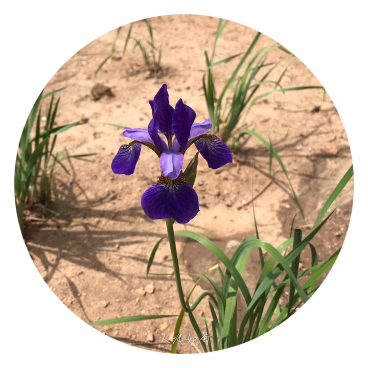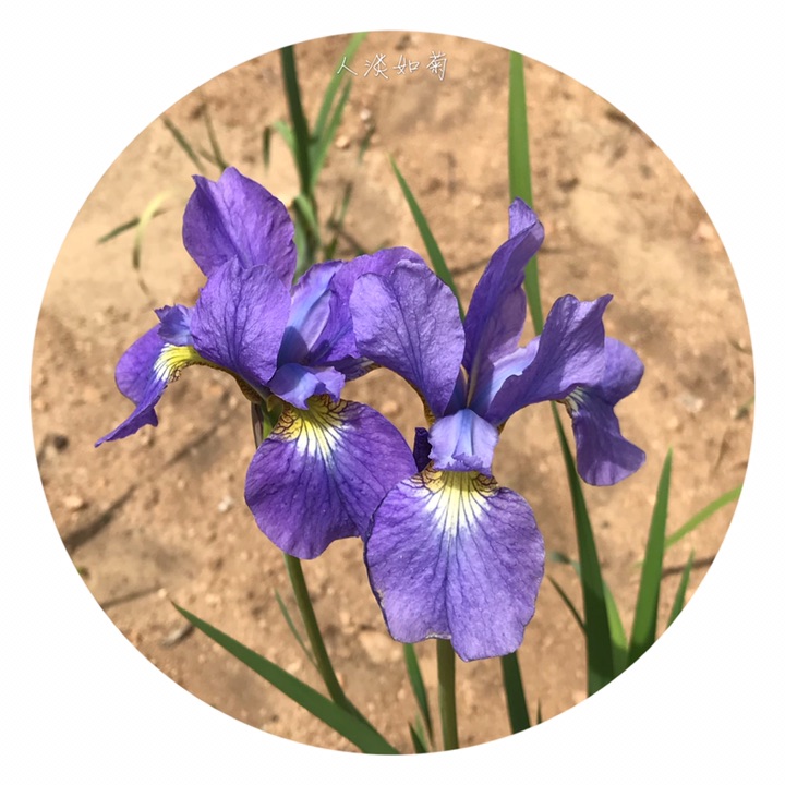 多年生草本。根状茎粗壮,斜伸,残留老叶叶鞘纤维;具多数灰白色须根。叶宽线形,长20-70厘米,宽0.5-1.5厘米,基部鞘状,先端渐尖,无明显中脉。花茎高40-50厘米,实心,具1-2枚茎生叶;苞片3,披针形,长约7厘米,绿色,膜质,先端渐尖;花2-3朵,蓝色,直径6-7厘米,花被管长约1厘米,花被片6,2轮排列,外花被片倒卵形,长约5厘米,宽约1厘米,基部有黑褐色的网纹及黄色斑纹,爪部楔形,无附属物,内花被裂片3,狭倒卵形,长约4厘米,宽约1.5厘米;雄蕊长约3厘米,花丝白色,具黄色花药,花柱分枝扁平,花瓣状,长约3.5厘米,先端裂片三角形,有细齿;子房三棱状柱形。蒴果三棱状圆柱形,长3.5厘米,直径1-1.5厘米,具6条纵肋,熟时由顶部开裂,花期6-7月,果期7-9月。