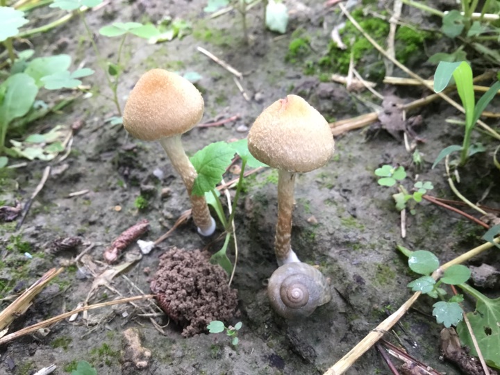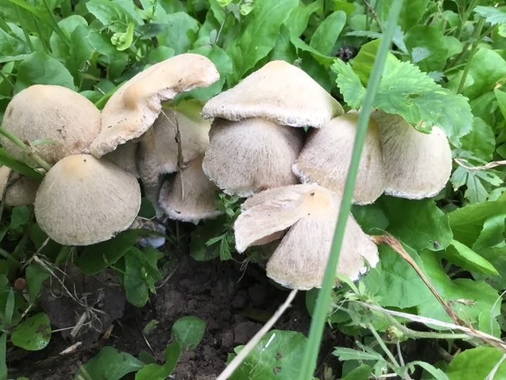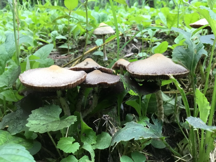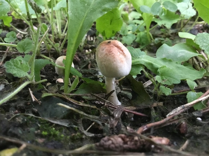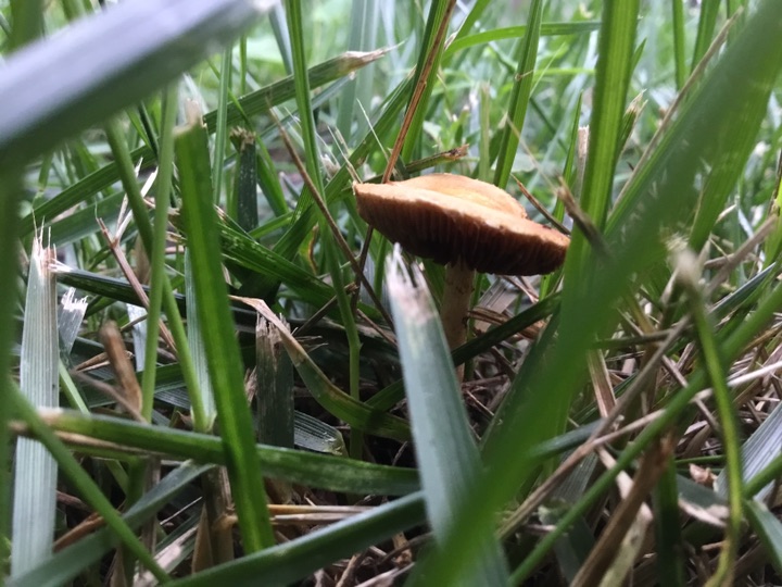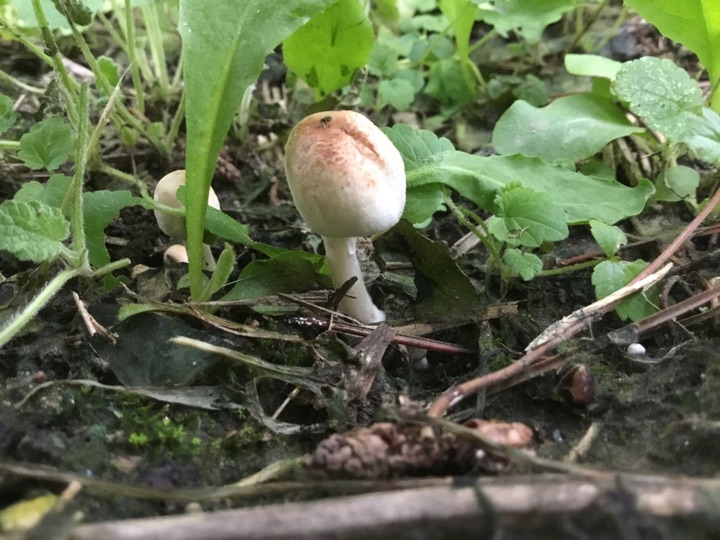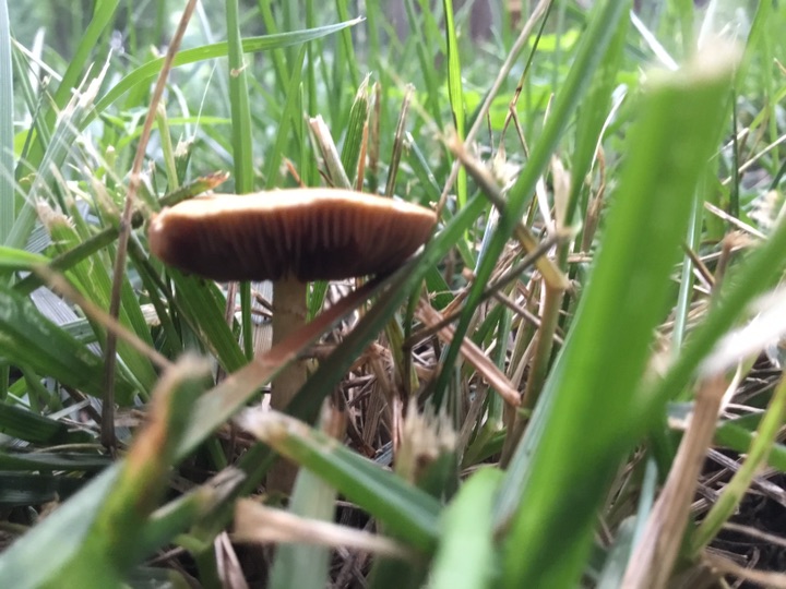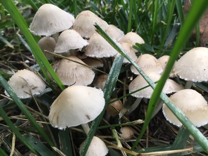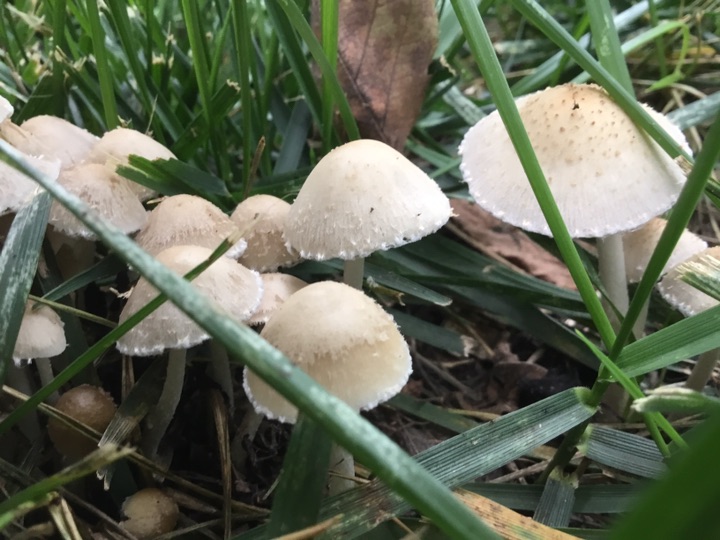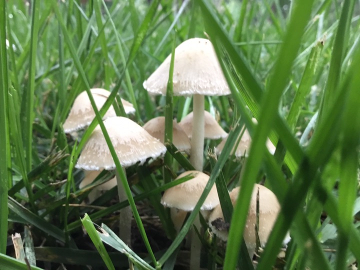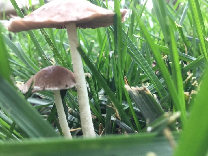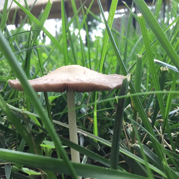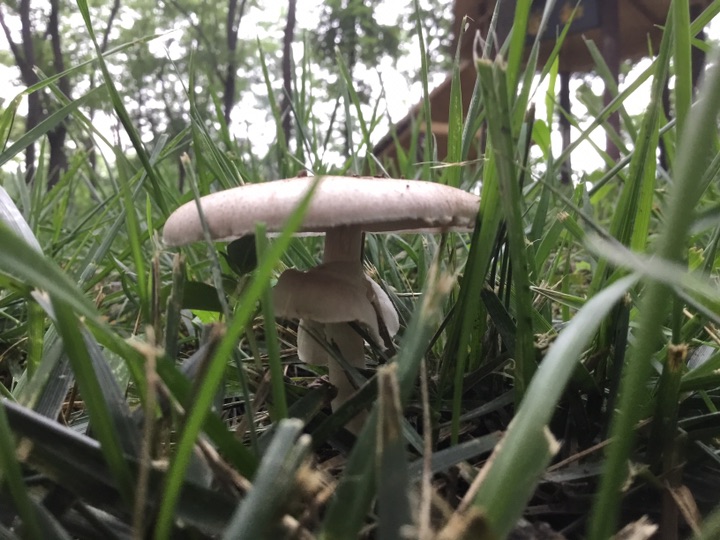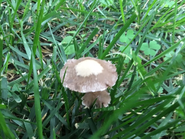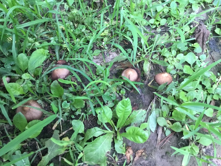 雨后、草坪上的小蘑菇🍄偷偷冒出来, 我在前面拍蘑菇 后面跟着一个老太太拿着小筐、采蘑菇🍄,不知道能不能吃😛