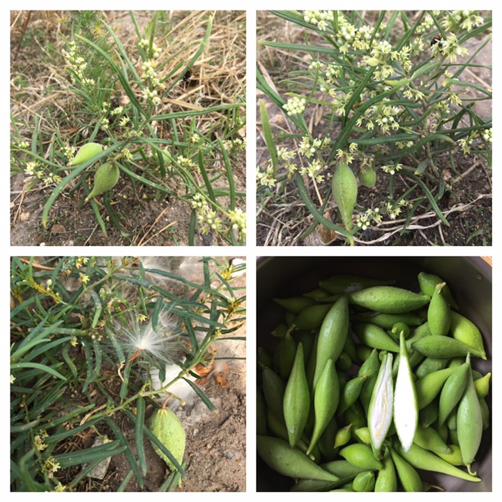 地稍瓜是蓼藦科鹅绒藤属植物,也叫青女、羊角、沙奶奶等。其茎多分叉,叶窄长条形,白花细碎。夏天开花结果,其果个头挺大,一个个像羊角,而且脆脆嫩嫩,甜丝丝。据说它还有一定的药用价值,能生津止咳润肺、清热降火、消炎止痛等。