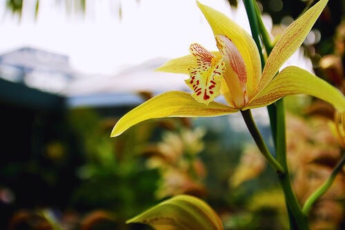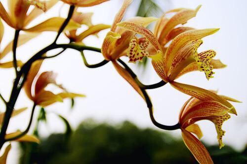 西藏虎头兰(学名:Cymbidium tracyanum L.):附生植物;假鳞茎椭圆状卵形或长圆状狭卵形,长5-11厘米,宽2-5厘米,大部分包藏于叶鞘之内。叶5-8枚或更多,带形。花葶从假鳞茎基部穿鞘而出,外弯或近直立;总状花序通常具10余朵花;花大,直径达13-14厘米,有香气;萼片与花瓣黄绿色至橄榄绿色,有多条不甚规则的暗红褐色纵脉;花瓣镰刀形,下弯并扭曲,长4.5-6.5厘米,宽7-12毫米;唇瓣卵状椭圆形,长4.5-6厘米,3裂。蒴果椭圆形。花期9-12月。