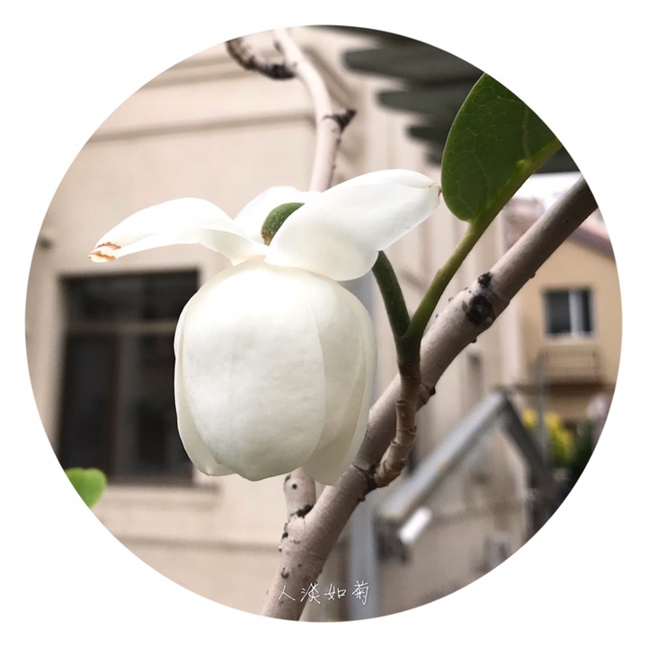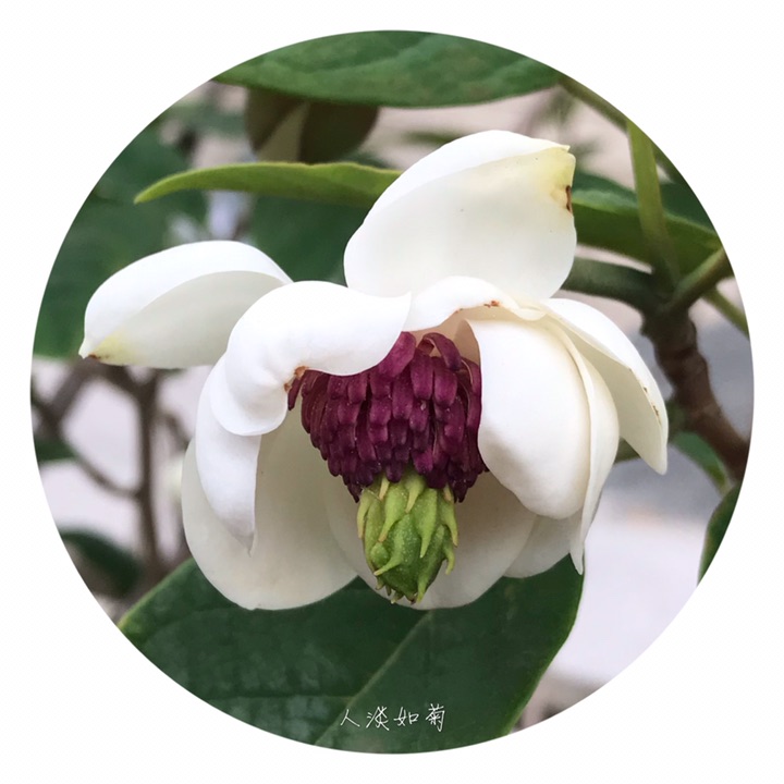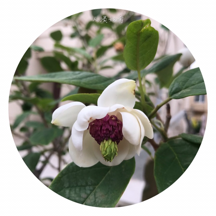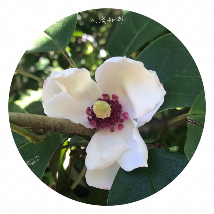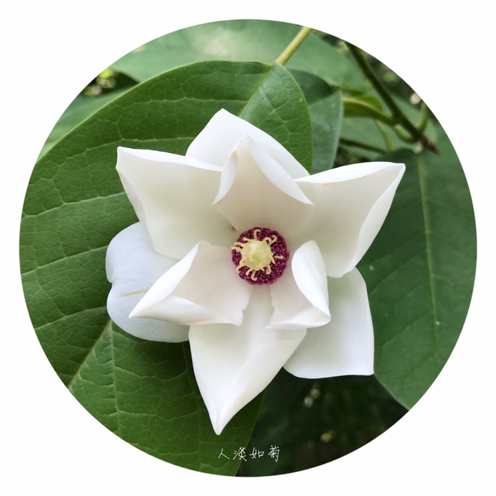 落叶小乔木,高可达10米,当年生小枝细长,直径约3毫米,淡灰褐色,初被银灰色平伏长柔毛。叶膜质,倒卵形或宽倒卵形,长(6)9-15(25)厘米,宽4-9(12)厘米,先端骤狭急尖或短渐尖,基部阔楔形、钝圆、平截或近心形,上面中脉及侧脉被弯曲柔毛,下面苍白色,通常被褐色及白色多细胞毛,有散生金黄色小点,中脉及侧脉被白色长绢毛,侧脉每边6-8条,叶柄长1-4(6.5)厘米,被褐色及白色平伏长毛,托叶痕约为叶柄长的1/2。花与叶同时开放,白色,芳香,杯状,盛开时碟状,直径7-10厘米;花梗长3-7厘米,密被褐色及灰白色平伏长柔毛,着生平展或稍垂的花朵;花被片9,近等大,外轮3片长圆状倒卵形或倒卵形,长4-6厘米,宽2.5-3.5厘米,基部被白色毛,顶端宽圆或圆,内两轮6片,较狭小,基部渐狭成短爪;雄蕊紫红色,长9-11毫米,花药长约6毫米,两药室邻接,内向纵裂,顶端微凹或药隔平,不伸出,花丝长3-4毫米;雌蕊群椭圆形,绿色,长约1.5厘米。聚合果熟时红色,倒卵圆形或长圆体形,长2-7厘米;蓇葖狭椭圆体形,长约1厘米,沿背缝线二瓣全裂。顶端具长约2毫米的喙;种子心形,外种皮红色,内种皮褐色,长与宽6-7毫米,顶孔细小末端具尖。