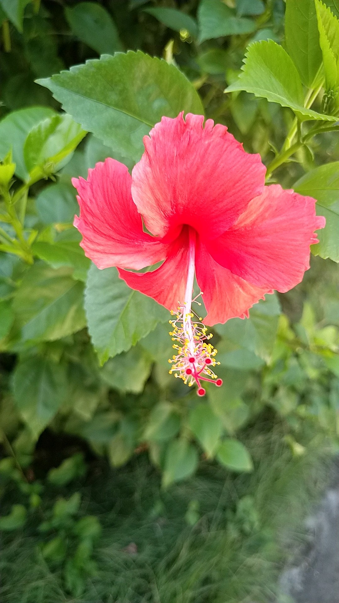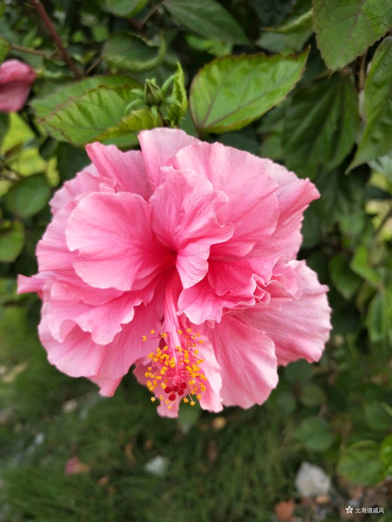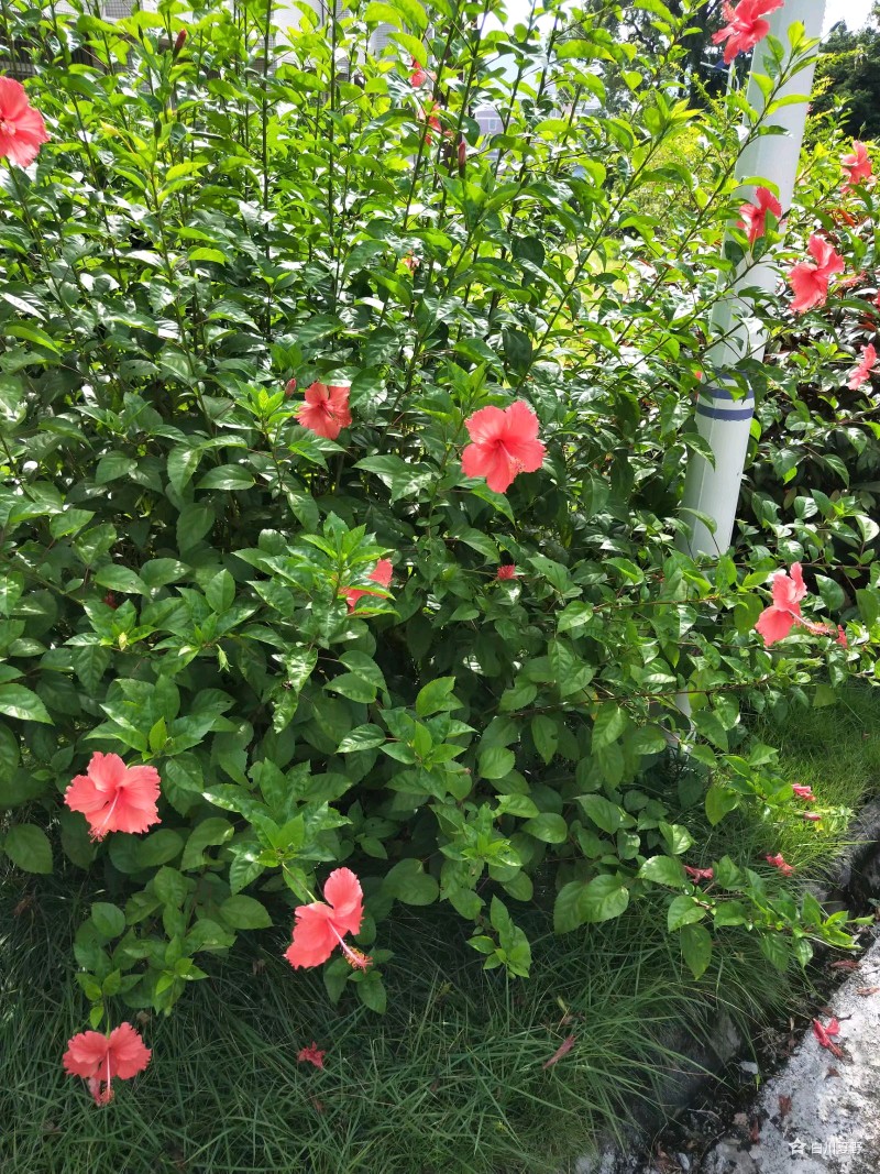 漫步在校园的若绿小道上,两旁开得烂漫的扶桑引起了我的注意。