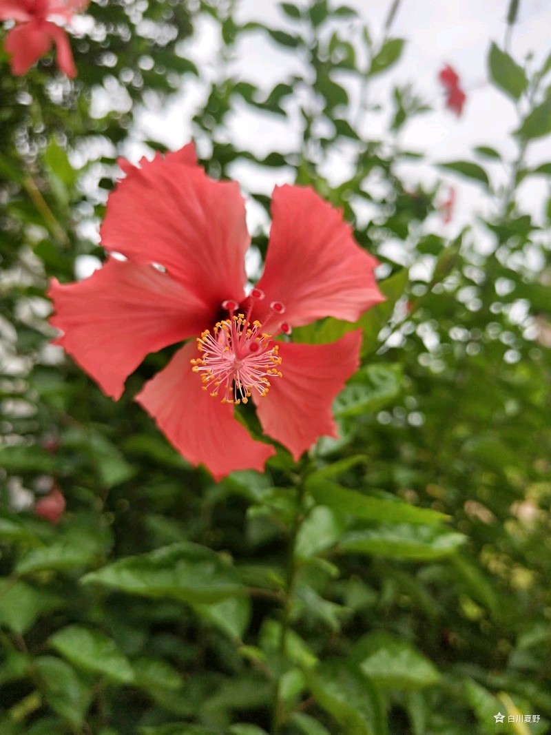 朱槿(学名:Hibiscus rosa-sinensisLinn. ):又名 扶桑、佛槿、中国蔷薇。