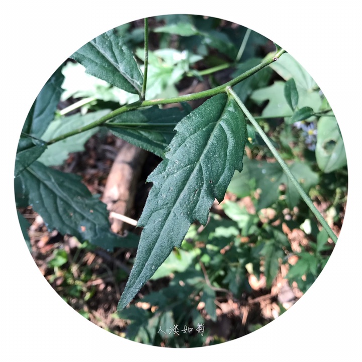 多年生草本,根状茎粗壮。茎直立,高40-100厘米,细或粗壮,有棱及沟,被柔毛或粗毛,上部有时屈折,有上升或开展的分枝。下部叶在花期枯落,叶片宽卵圆形,急狭成长柄;中部叶椭圆形或长圆状披针形,长5-15厘米,宽1-5厘米,中部以上急狭成楔形具宽翅的柄,顶端渐尖,边缘有3-7对浅或深锯齿;上部叶渐小,有浅齿或全缘,全部叶纸质,上面被短糙毛,下面浅色被短柔毛常有腺点,或两面被短茸毛而下面沿脉有粗毛,有离基(有时长达7厘米)三出脉,侧脉3-4对,网脉常显明。头状花序径1.5-2厘米,排列成伞房或圆锥伞房状,花序梗长0.5-3厘米。总苞倒锥状或半球状,径4-10毫米,长3-7毫米;总苞片3层,覆瓦状排列,线状长圆形,下部近革质或干膜质,上部绿色或紫褐色,外层长达2毫米,内层长约4毫米,有短缘毛。舌状花约十余个,管部长2毫米,舌片线状长圆形,长达11毫米,宽2毫米,紫色,浅红色或白色,管状花黄色,长4.5-5.5毫米,管部长1.5毫米,裂片长1-2毫米;花柱附片长达1毫米。冠毛浅红褐色或污白色,长3-4毫米。瘦果倒卵状长圆形,灰褐色,长2-2.5毫米,有边肋,一面常有肋,被短粗毛。花果期7-12月。