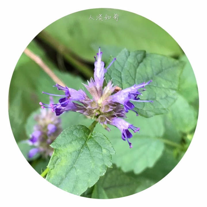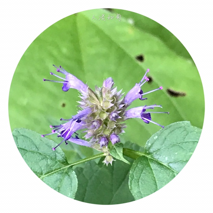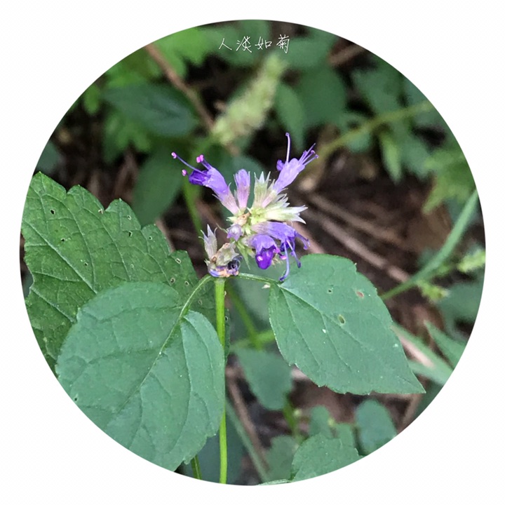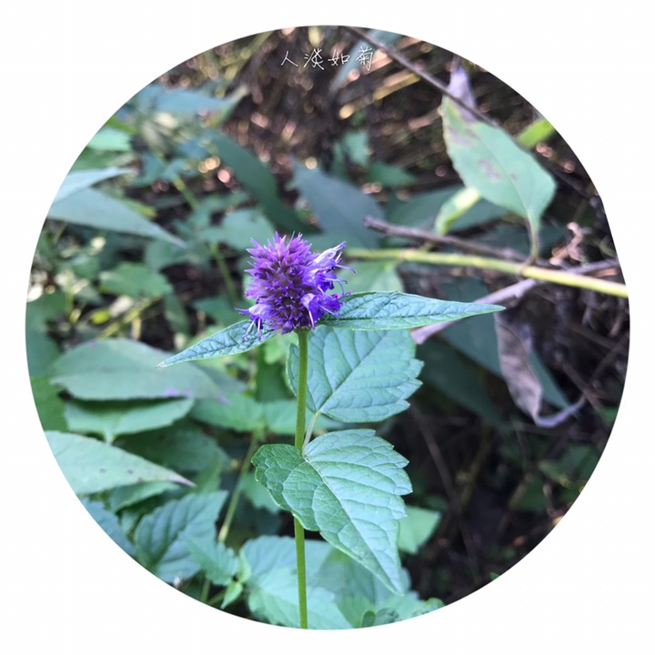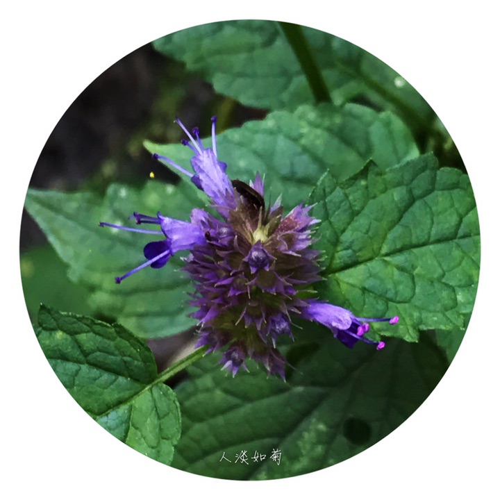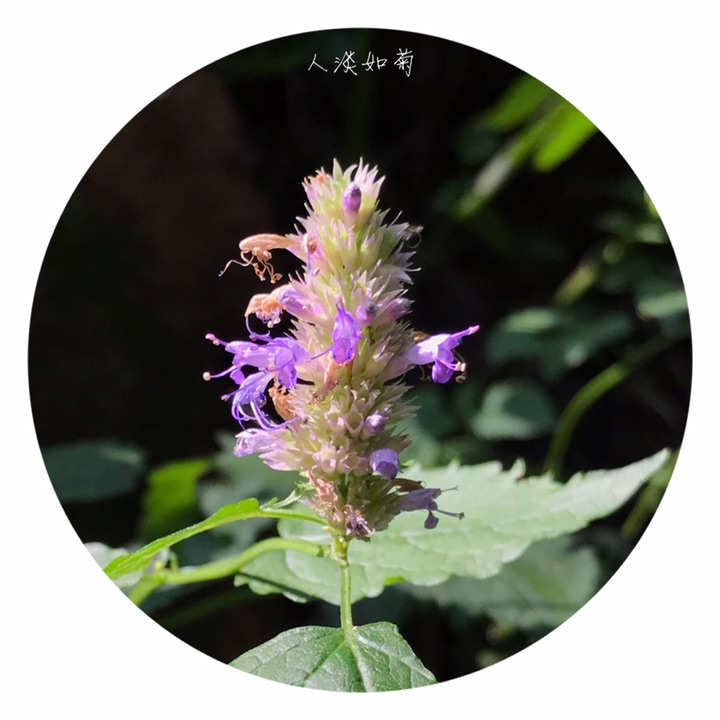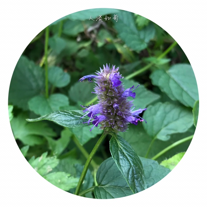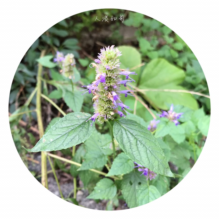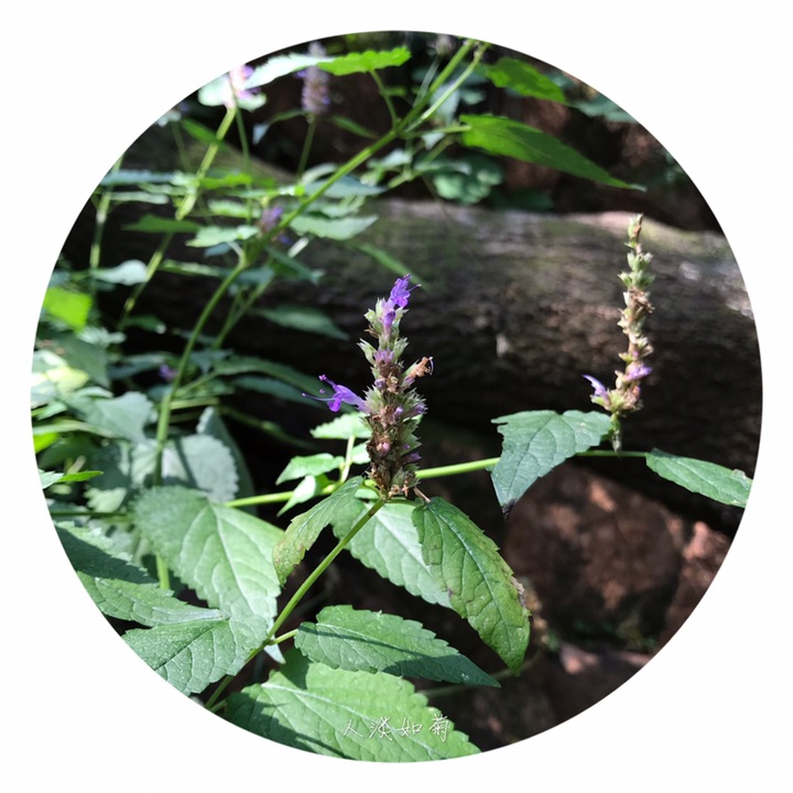 藿香,学名:Agastache rugosa (Fisch. et Mey.)O. Ktze.;别称合香、苍告、山茴香等,属唇形目、唇形科、藿香属多年生草本植物,茎直立,高0.5~1.5m,四棱形,粗达7~8mm,叶心状卵形至长圆状披针形,花冠淡紫蓝色,长约8mm,成熟小坚果卵状长圆形,长约1.8mm,宽约1.1mm,花期6~9月,果期9~11月。