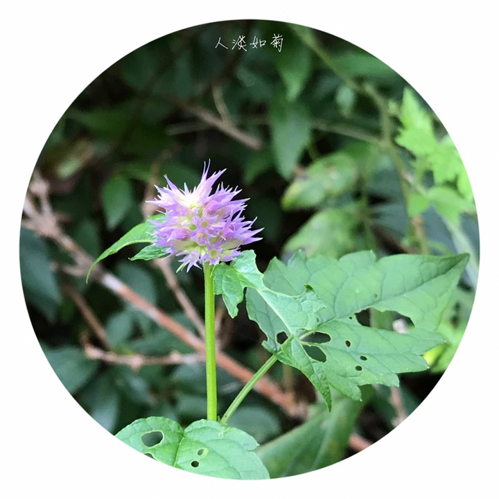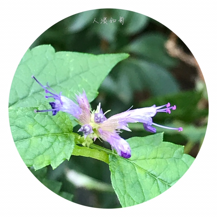 多年生草本。茎直立,高0.5~1.5m,四棱形,粗达7~8mm,上部被极短的细毛,下部无毛,在上部具能育的分枝。叶心状卵形至长圆状披针形,长4.5~11cm,宽3~6.5cm,向上渐小,先端尾状长渐尖,基部心形,稀截形,边缘具粗齿,纸质,上面橄榄绿色,近无毛,下面略淡,被微柔毛及点状腺体;叶柄长1.5~3.5cm。轮伞花序多花,在主茎或侧枝上组成顶生密集的圆筒形穗状花序,穗状花序长2.5~12cm,直径1.8~2.5cm;花序基部的苞叶长不超过5mm,宽约1~2mm,披针状线形,长渐尖,苞片形状与之相似,较小,长约2~3mm;轮伞花序具短梗,总梗长约3mm,被腺微柔毛。花萼管状倒圆锥形,长约6mm,宽约2mm,被腺微柔毛及黄色小腺体,多少染成浅紫色或紫红色,喉部微斜,萼齿三角状披针形,后3齿长约2.2mm,前2齿稍短。花冠淡紫蓝色,长约8mm,外被微柔毛,冠筒基部宽约1.2mm,微超出于萼,向上渐宽,至喉部宽约3mm,冠檐二唇形,上唇直伸,先端微缺,下唇3裂,中裂片较宽大,长约2mm,宽约3.5mm,平展,边缘波状,基部宽,侧裂片半圆形。雄蕊伸出花冠,花丝细,扁平,无毛。花柱与雄蕊近等长,丝状,先端相等的2裂。花盘厚环状。