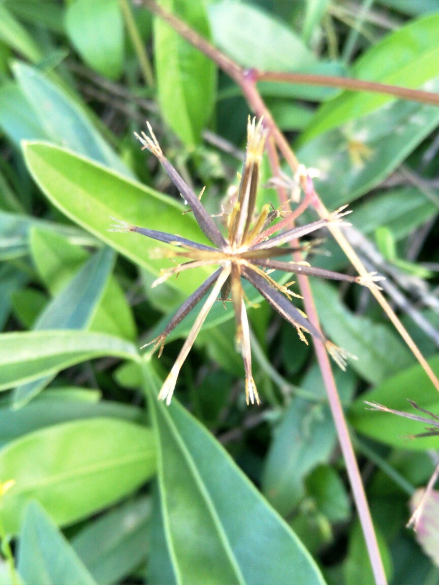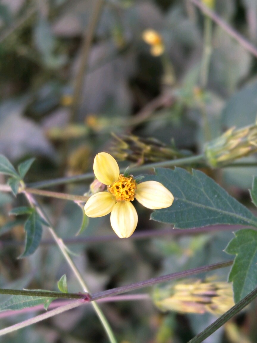 野生多见,多年生草本,,夏秋陆续开花,单辨4片淡黄色,荚果似针。