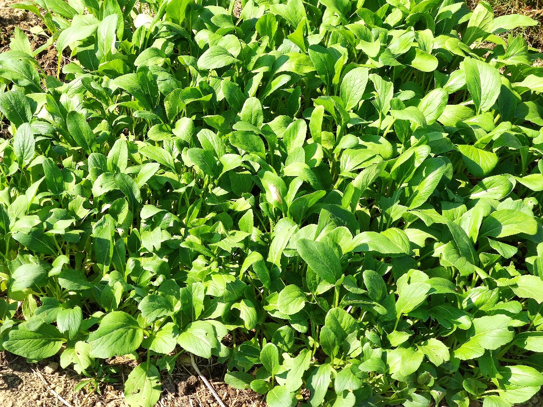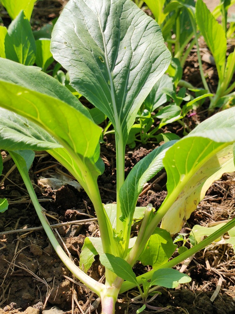 一次就撒一点儿种子,等到它出土差不多能吃了,再接着撒另一波种子。我们这边自己家种蔬菜一般都是如此,一茬一茬的播种然后持续不断的都有嫩蔬菜吃。你看,有些都已经好大一棵了,有些却密密麻麻的还是初长成,之前的白菜也是如此。我喜欢吃用这个菜腌制的酸菜,酸脆爽口味道特别的好!
