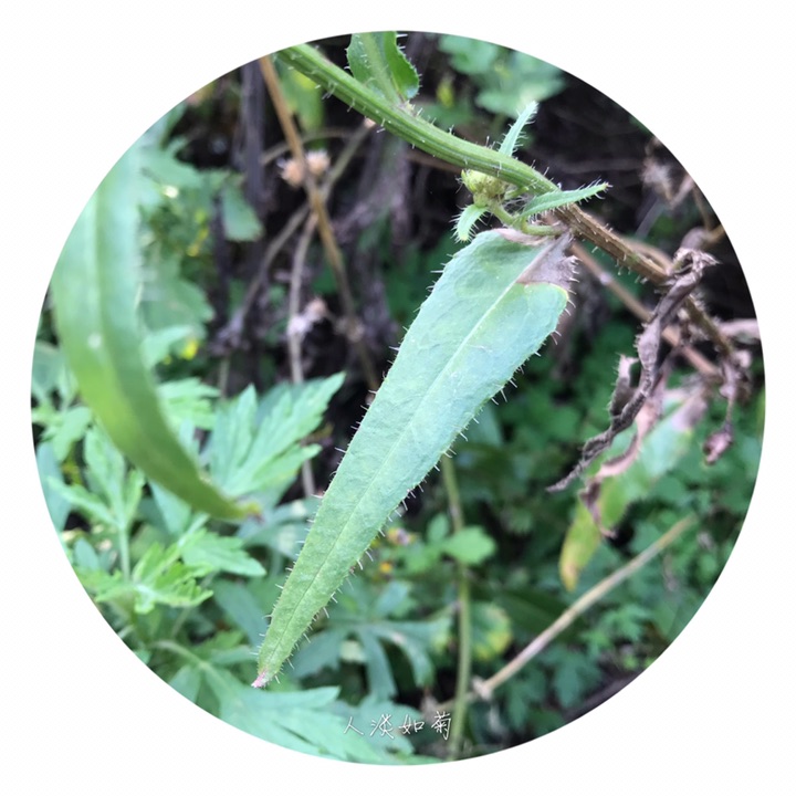 二年生草本,高16-120厘米。根垂直直伸,粗壮。茎直立,上部伞房状或伞房圆状分枝,有纵沟纹,被稠密或稀疏的亮色分叉的钩状硬毛。基生叶花期枯萎脱落;下部茎叶长椭圆形或宽披针形,长8-34厘米,宽0.5-6厘米,先端渐尖或急尖或钝,边缘全缘或有尖锯齿或大而钝的锯齿,基部渐狭成长或短翼柄;中部和上部茎叶披针形或线形,较下部茎叶小,无柄,基部半抱茎;最上部茎小,全缘;全部茎叶两面特别是沿脉被亮色的钩状分叉的硬毛。头状花序较多数,在茎枝顶端排成伞房花序或伞房圆锥花序,花序梗细长。总苞圆柱状钟形,长达1.2厘米;总苞片3层,外层线形,短,长2-4毫米,宽不足1毫米,顶端急尖,内层长,线状披针形,长10-12毫米,宽约2毫米,边缘白色膜质,先端渐尖;全部总苞片外面被硬毛和短柔毛。舌状小花黄色,冠筒被白色短柔毛。瘦果纺锤形,长约3毫米,棕褐色,有纵肋,肋上有横皱纹。冠毛白色,外层极短,糙毛状,内层长,羽毛状,长约6毫米。花果期6-9月。