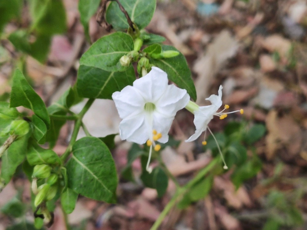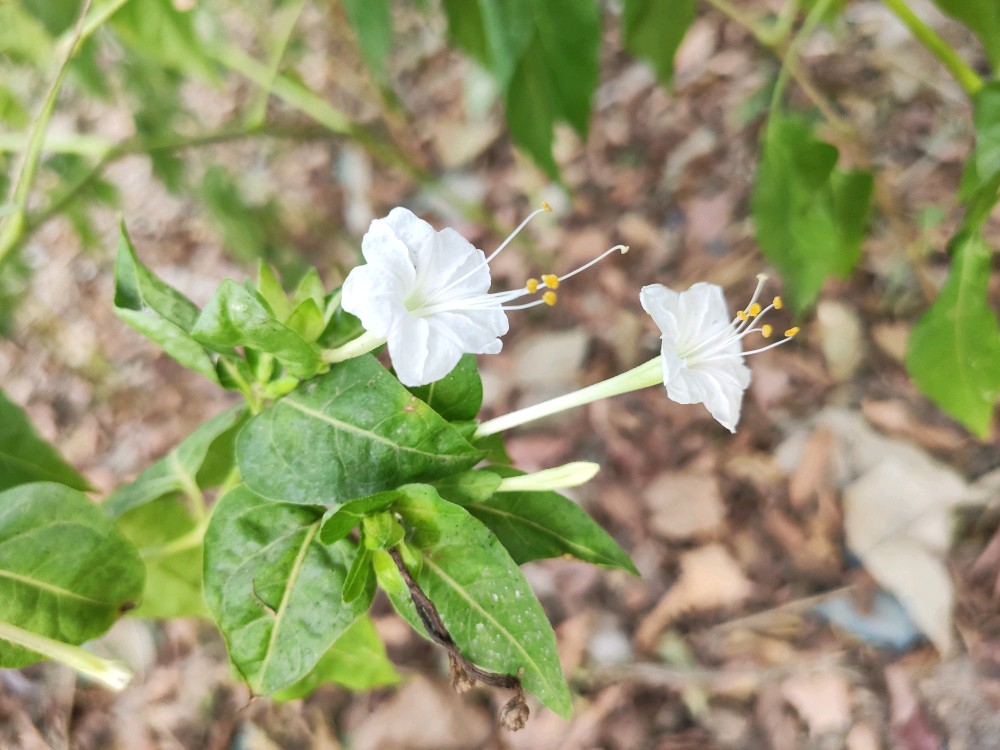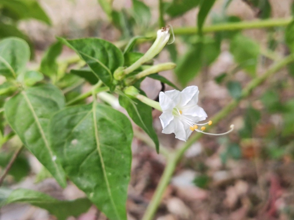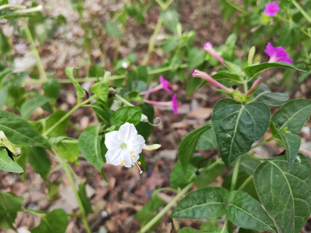 还以为白色的早已经消失不见了,就在爷爷家的后院,居然还藏着几株白色的紫茉莉。记得之前爷爷家后院还有红艳似火的石蒜的,这次却找不到踪影了。