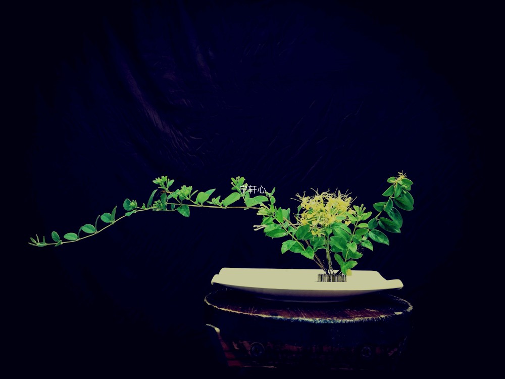 一只盆,当伊是一片湖。有剑山占了一隅,剑山其实就是一只金属的花插。插花这种事也可以摆勒山水之间。