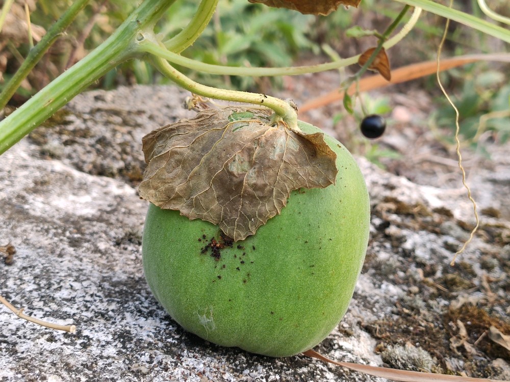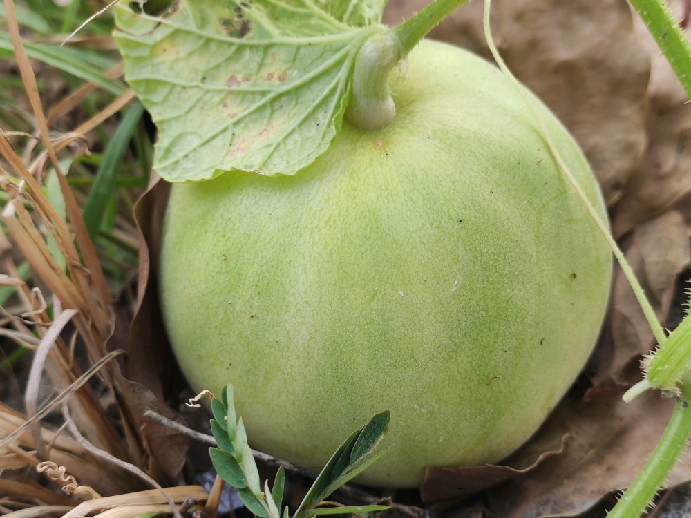 我的瓜就剩这几个了,图一看着像是快熟了的样子,本来想摘的,可拿起来闻了闻却没有一点香甜味儿。又放回去了,等两天再说吧。不过估计等两天又没了……