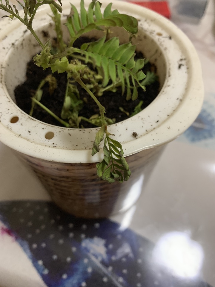 含羞草买回家后叶子就慢慢卷曲干枯,现在都快死了,怎么救😭
