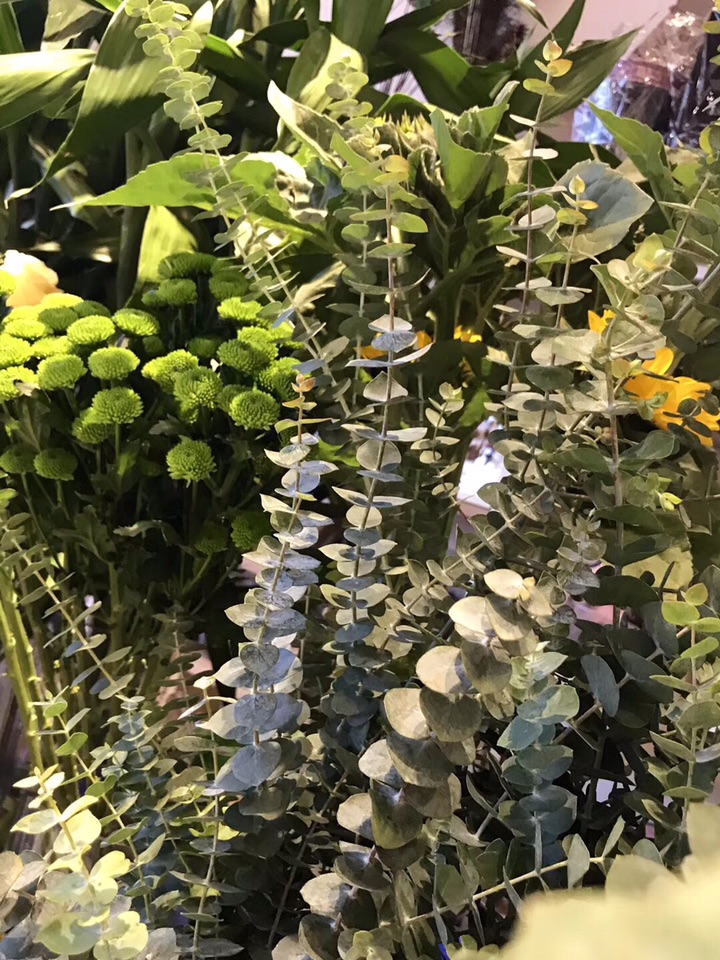 银叶桉是常绿灌木或小乔木,株高可达3米。幼叶对生,无柄,阔卵形或阔盾形;老叶互生,呈披针形,两面均被白粉,银绿色。秋至春季开花,伞形花序。叶色优雅,枝叶是上等花材。不耐高温,在华南地区以存高冷地栽培为佳。市场常用做切枝,商品名为尤加利。