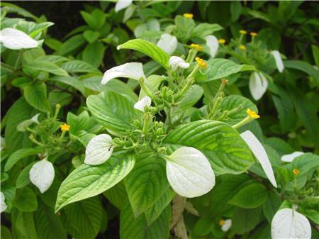 玉叶金花常野生于丘陵山坡、灌丛、林缘、沟谷、山野、路旁等地,其茎叶味甘、性凉,有清凉消暑、清热疏风的功效,是一种具有观赏、药用、生态等多种价值的树种。