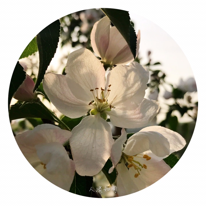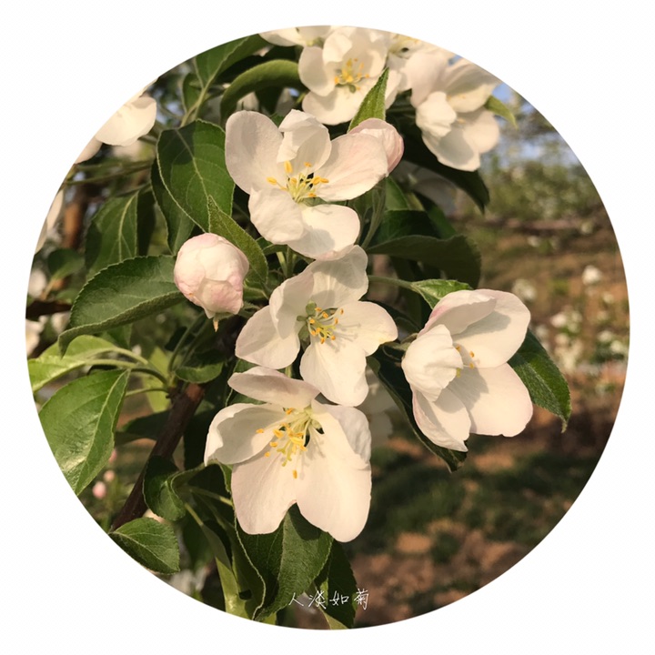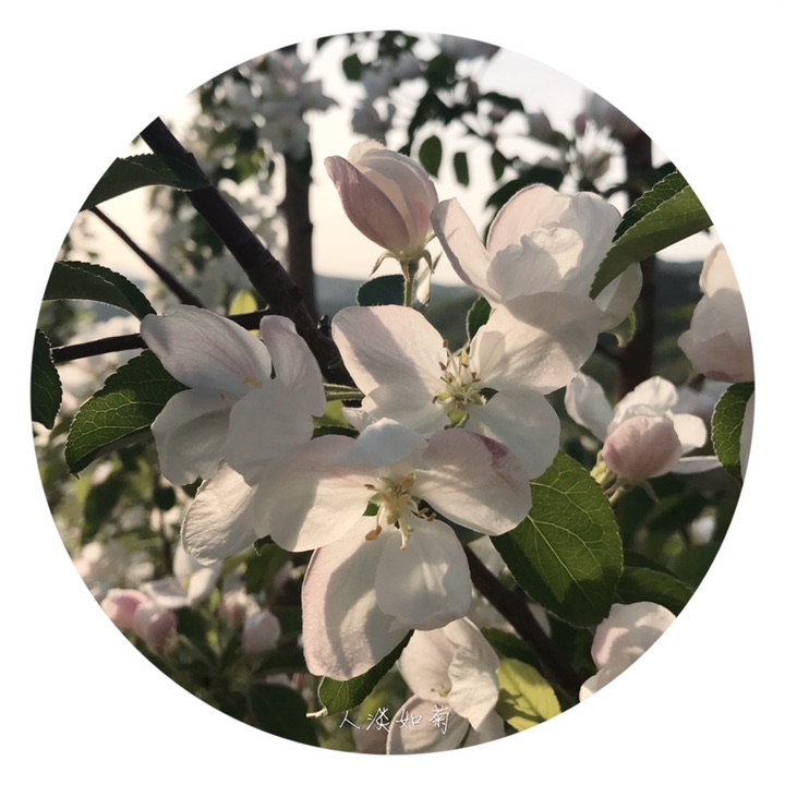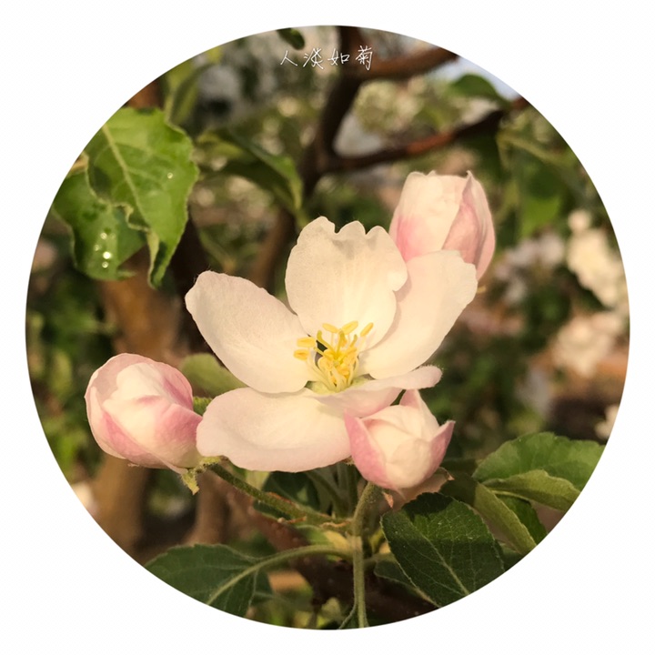 伞房花序,具花4-7朵,集生在小枝顶端;花梗长1.5-2厘米,密被柔毛;花直径3-4厘米;萼筒钟状,外面密被柔毛;萼片三角披针形,长4-5毫米,先端渐尖,全缘,内外两面密被柔毛,萼片比萼筒稍长;花瓣倒卵形或长圆倒卵形,长8-13毫米,宽4-7毫米,基部有短爪,淡粉色;雄蕊17-20,花丝长短不等,比花瓣短;花柱4 (-5),基部具长绒毛,比雄蕊较长。