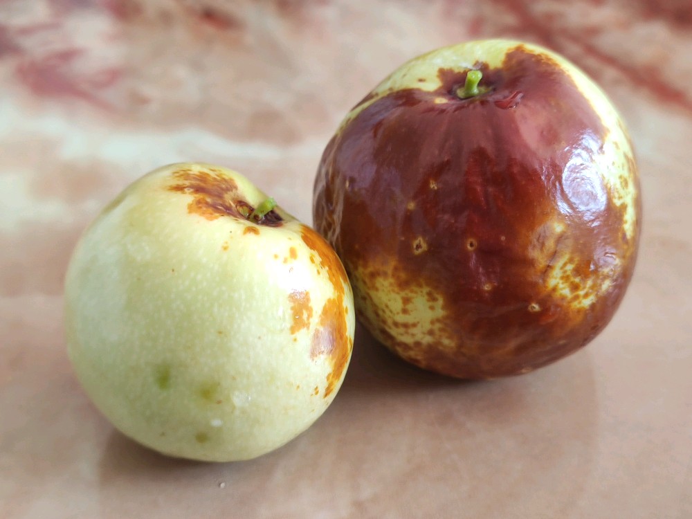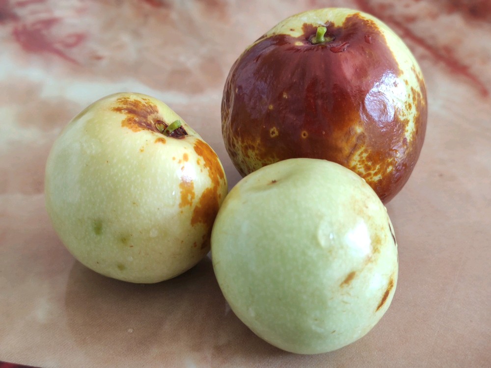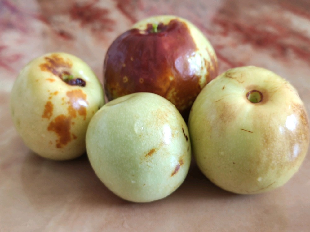 上次拍的那串枣摘下来了,总共 6个,每一个都好甜。现在就只剩树梢还有几个了,也不用担心别人摘了去,可以留熟一点再摘咯
