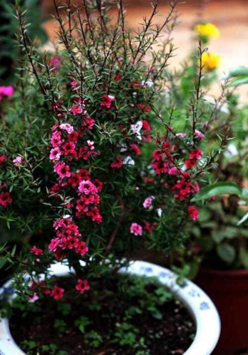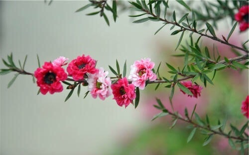 松红梅,拉丁学名(Leptospermum scoparium),常绿小灌木,桃金娘科,是近年来引进的园林花卉品种。