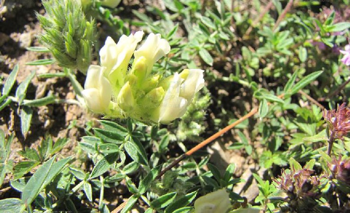 白花棘豆(学名:Oxytropis subfalcata Hance var. albiflora C. W. Chang)多年生草本,高10-70厘米。茎极缩短,常于表土下分枝形成密丛。小叶对生,长圆状披针形或卵形。多花组成稀疏的总状花序;苞片线形,花萼钟状,花冠白色。荚果革质,长圆状卵形。花期7-8月。产于内蒙古、河北、山西、甘肃、青海及河南等省区。生于海拔1200-3000米的山顶、山坡(阳坡)、石质山坡、路旁、沟谷阴湿处、草地、灌丛中及疏林下。