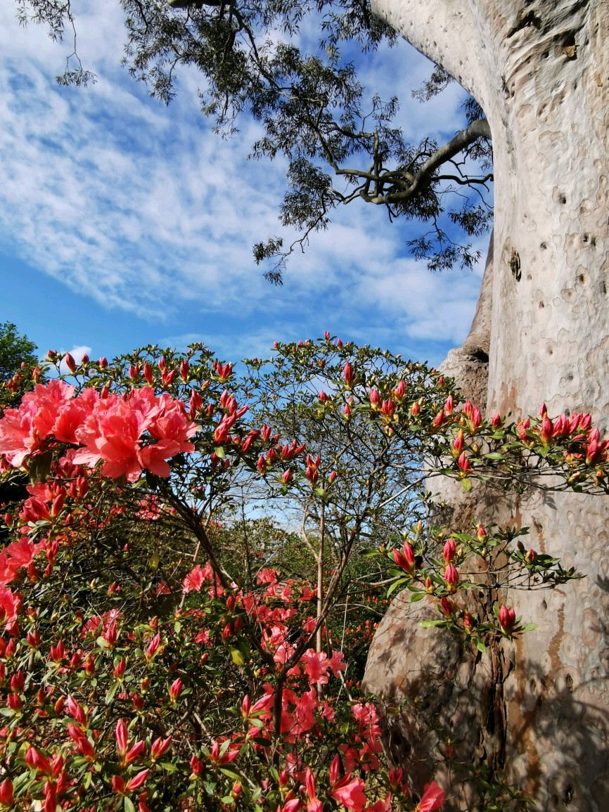 街道两边除了这种大树杜鹃花,其它杜鹃品种也开得灿烂