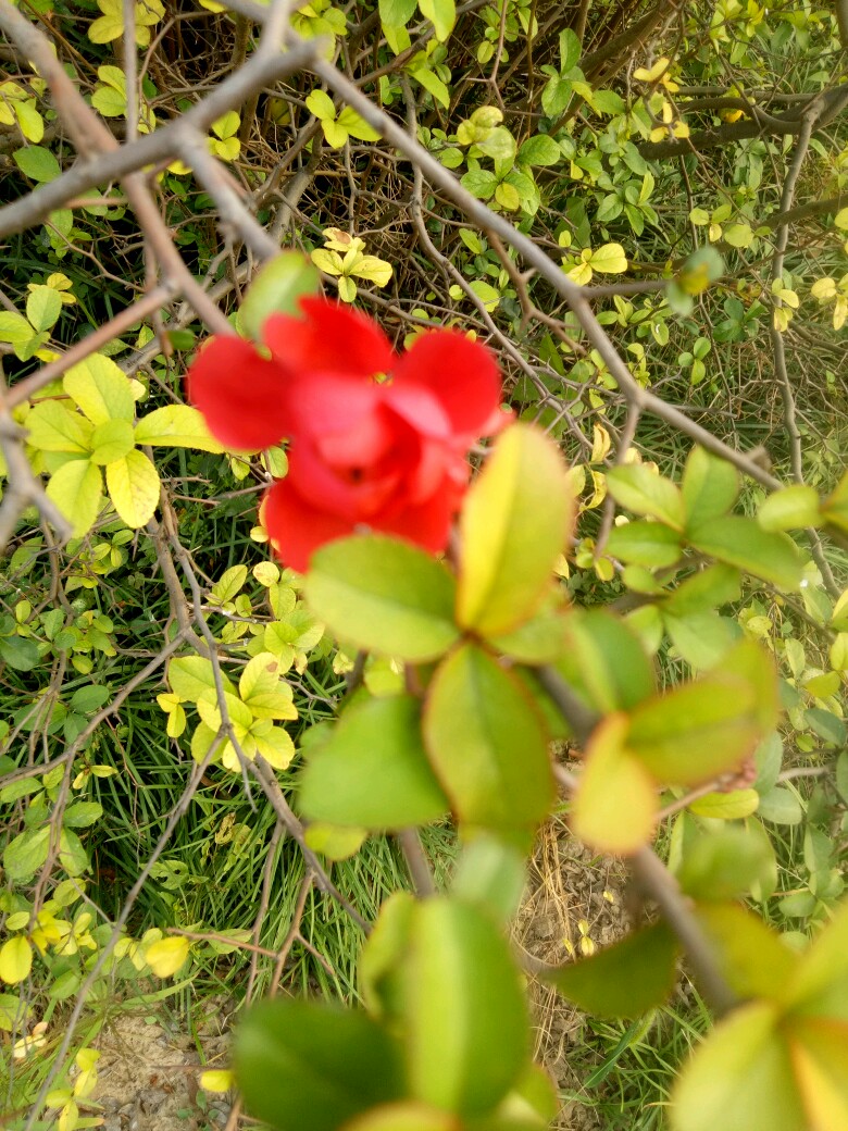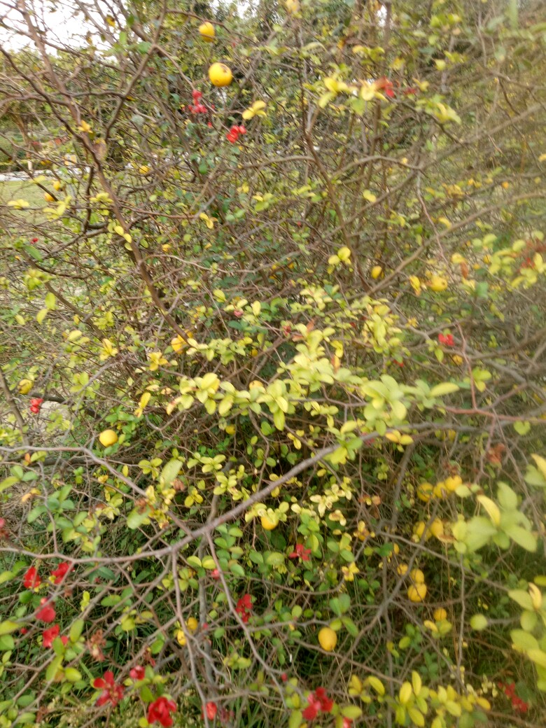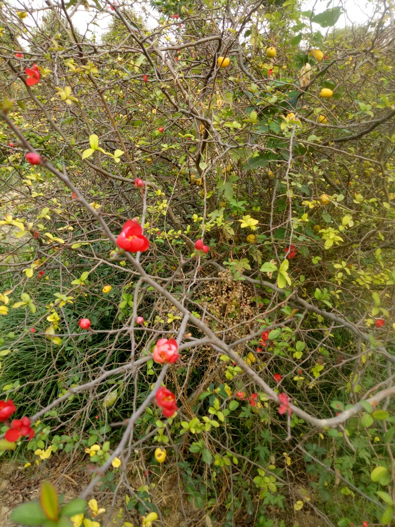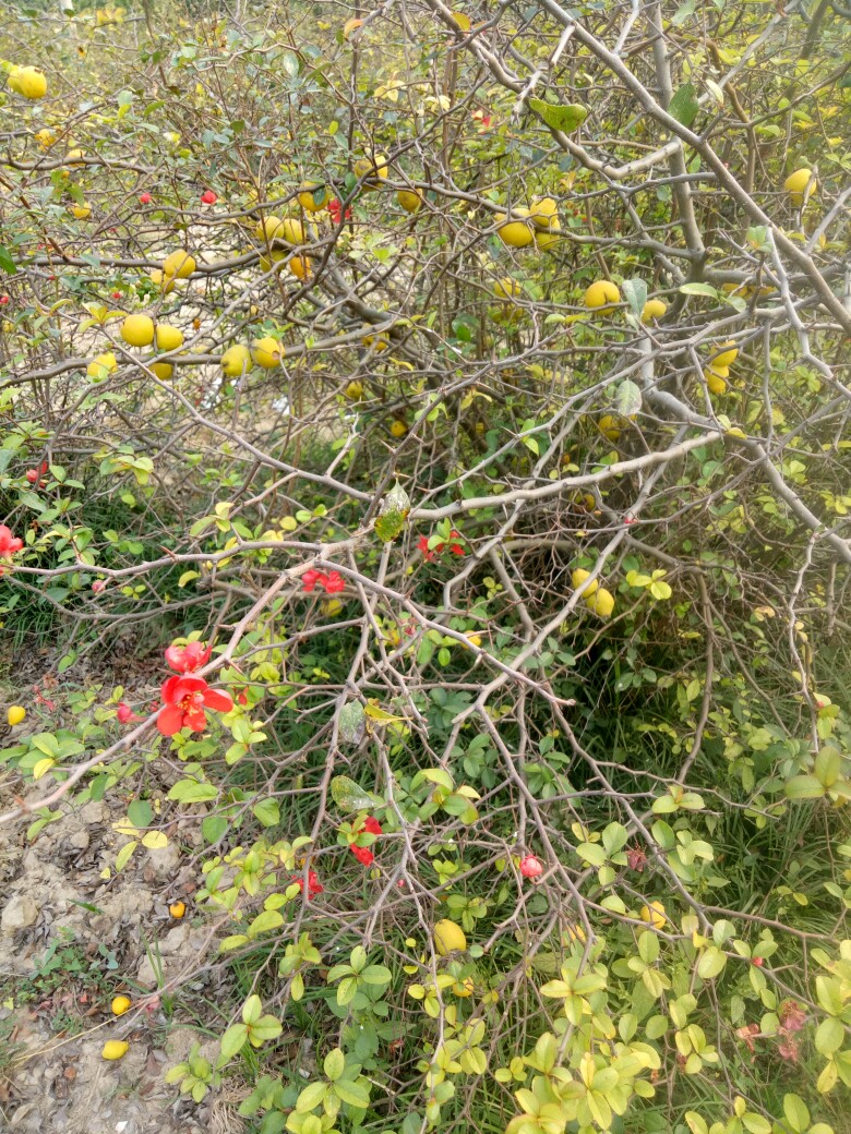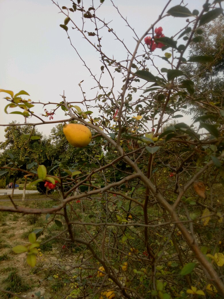 国庆节了,还能看到红色的小花和黄黄的果实挂满枝头,而且还有很多小刺
