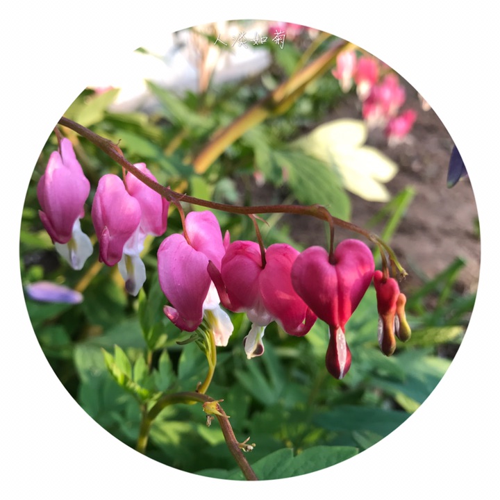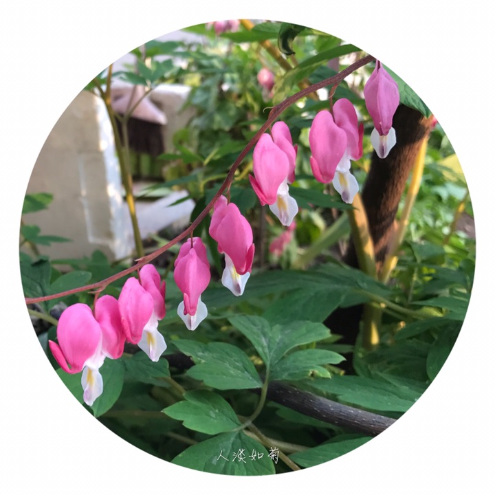 荷包牡丹,(拉丁学名:Dicentra spectabilis (L.) Lem.),别称荷包花、蒲包花、兔儿牡丹、铃儿草、鱼儿牡丹。为罂粟科荷包牡丹属多年生草本植物,株高30~60cm。地上茎直立,圆柱形,带紫红色,根状茎肉质,小裂片通常全缘,表面绿色,背面具白粉,两面叶脉明显;叶柄长约10厘米,形似当归。
