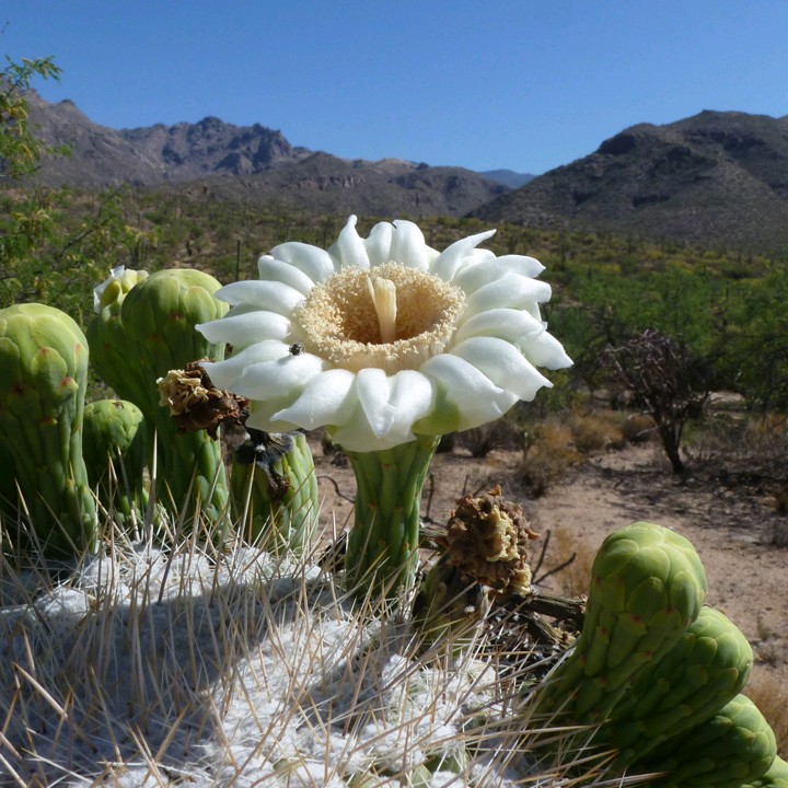 巨柱仙人掌的开花期是五月至六月,这是当地雨季前不久。花在日落后约两小时后开放,开到第二天中午。巨人柱无法生活在太干燥和有冰冻危险的地区(比如索诺拉沙漠的高处)。火灾和雷击也对巨人柱造成威胁。此外巨人柱的根虽然分布得非常广,但是却非常浅,这样它们可以利用极小的降水,其缺点是稍微大的风就能将它们吹倒。[2]