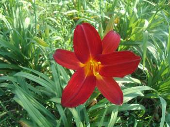 高度30-35厘米,花期5月底-10月初,花色为红色,年分蘖率15-20倍,对土壤要求低,抗病虫害能力强,在零下30度的环境里能自然越冬,是园林绿化中的优良萱草品种!